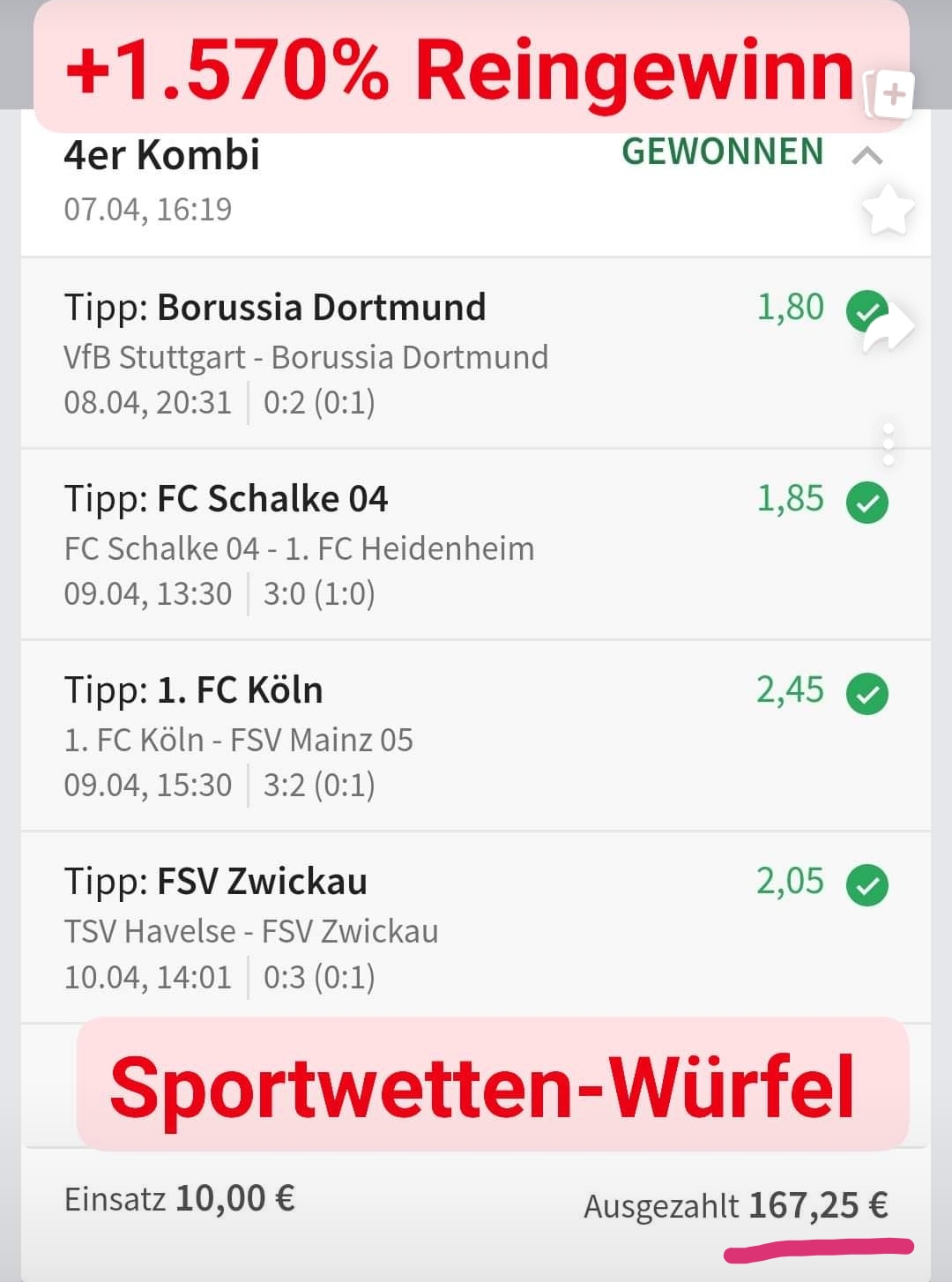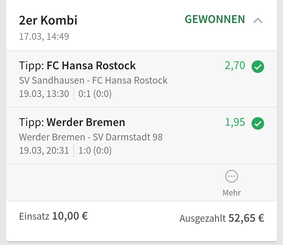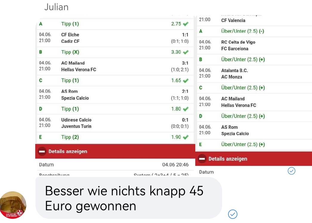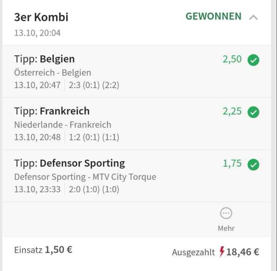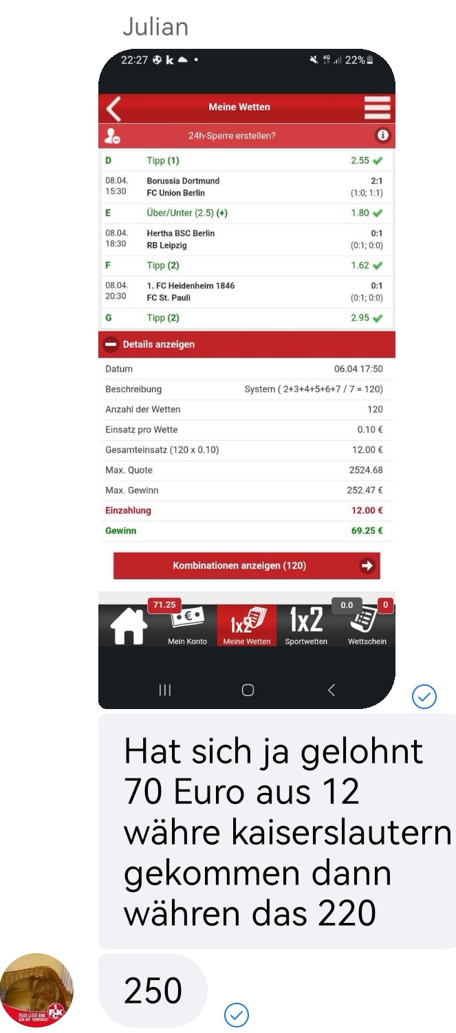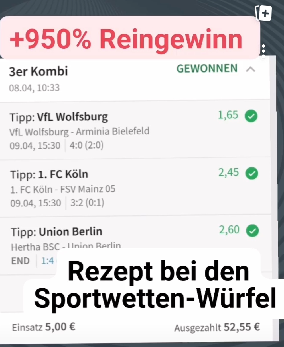 • Du findest hier viele Erfolge des mathematischen Sportwetten Würfel Sets. Sie können nämlich deine Chancen erhöhen und dich langfristig in den grünen Bereich bringen (wie bei mir).