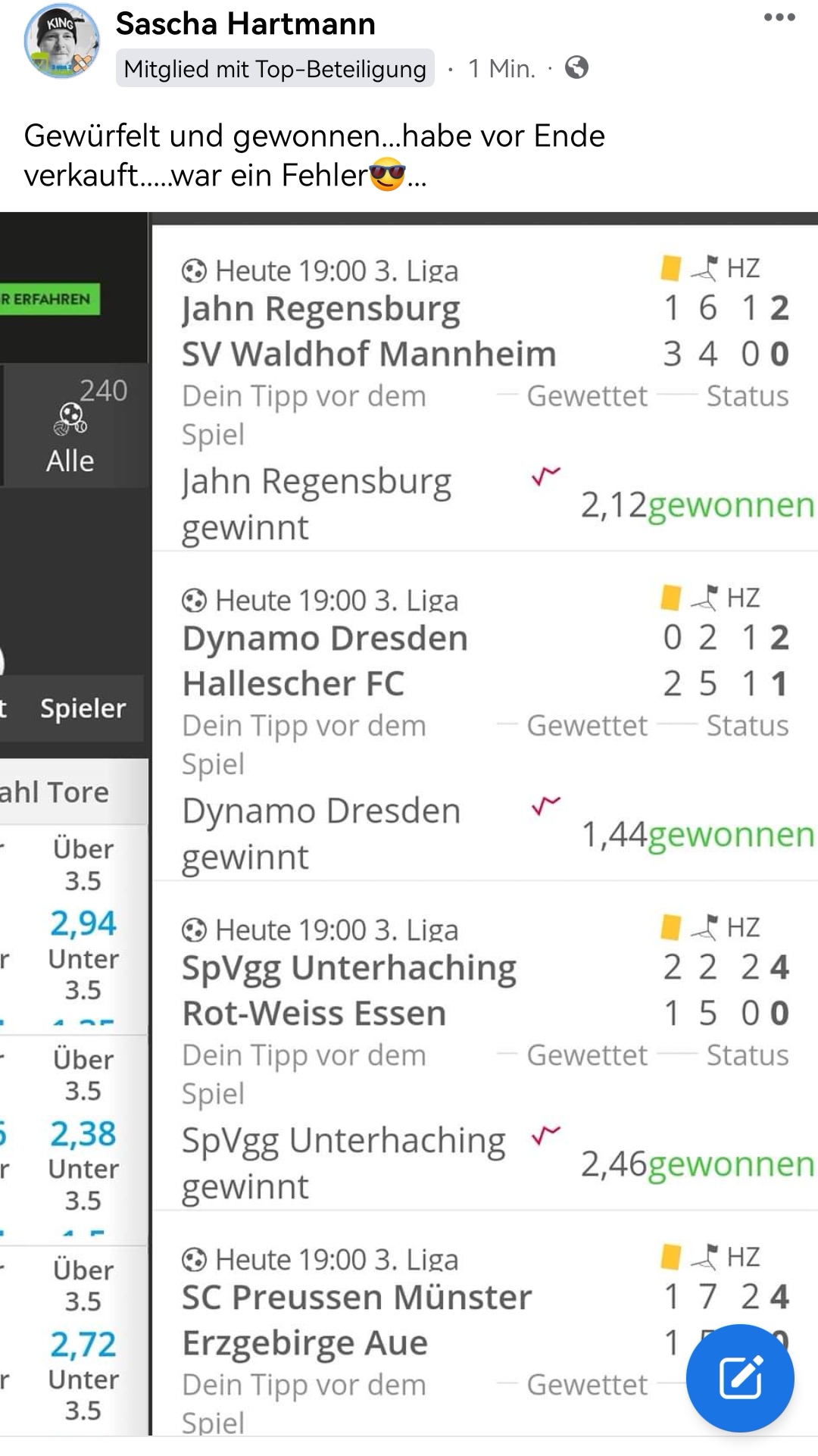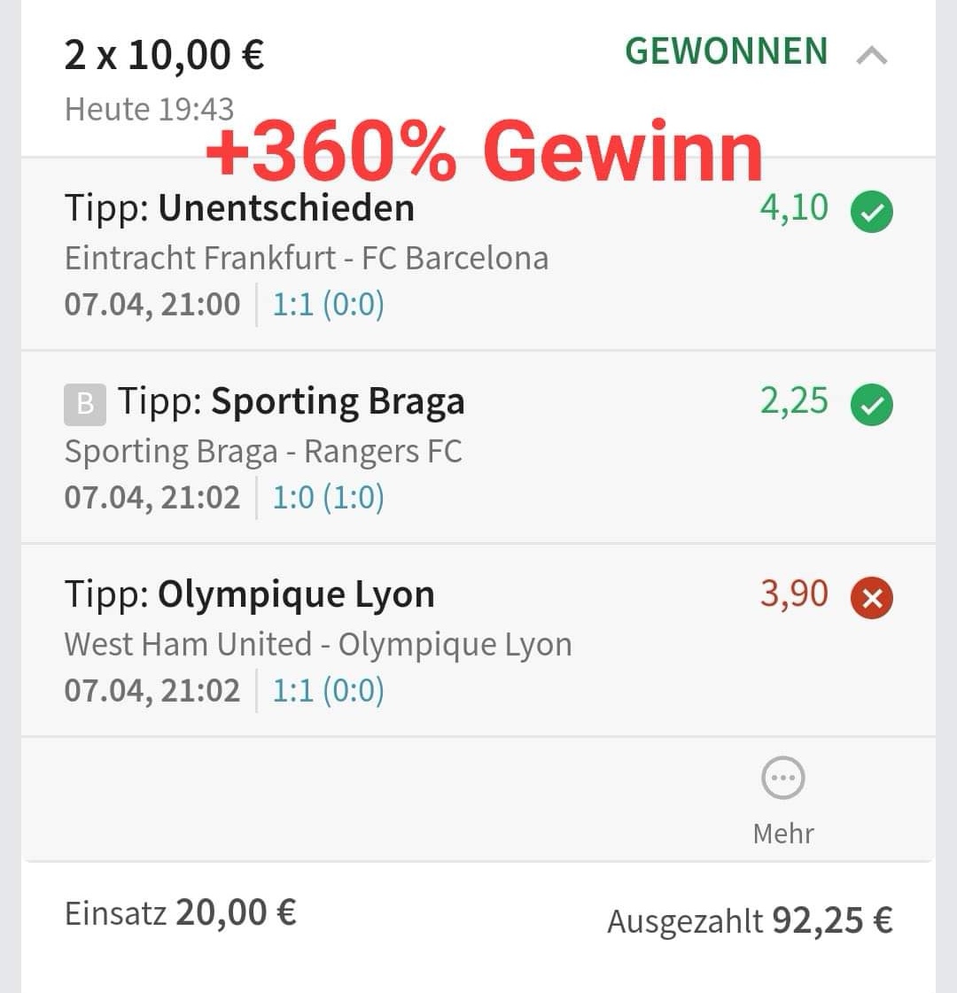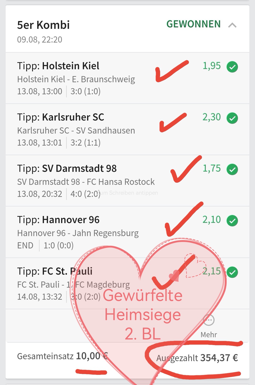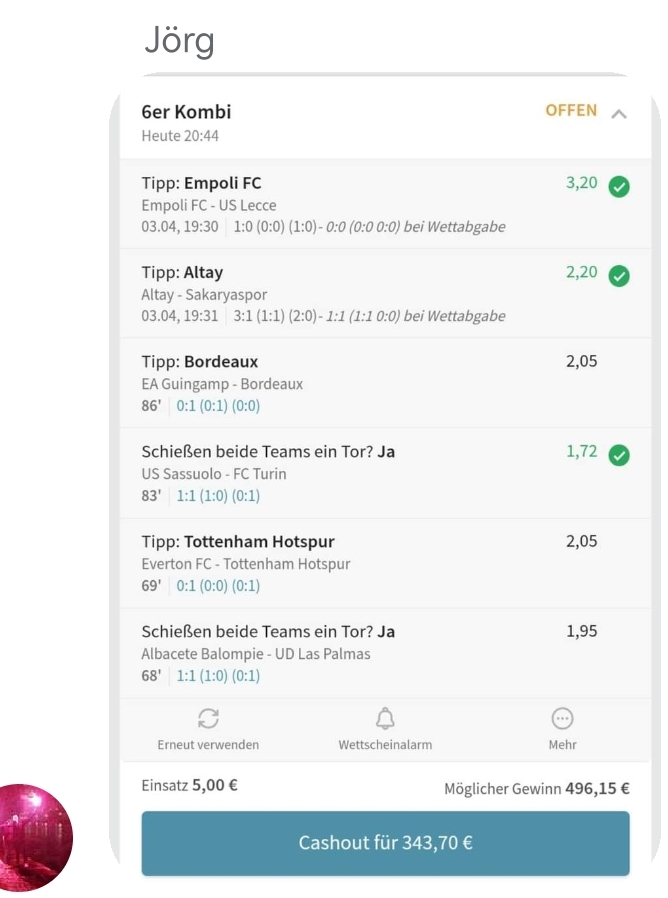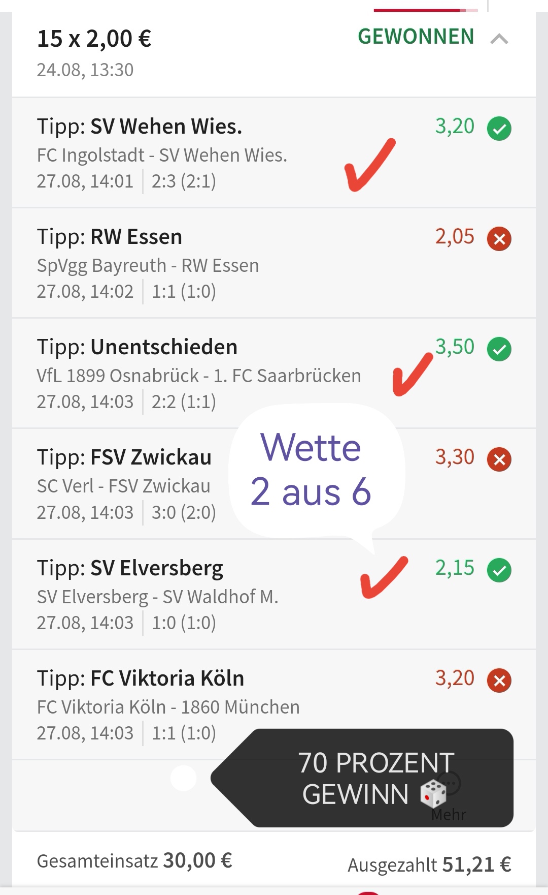• Du findest hier viele Erfolge des mathematischen Sportwetten Würfel Sets. Sie können nämlich deine Chancen erhöhen und dich langfristig in den grünen Bereich bringen (wie bei mir).