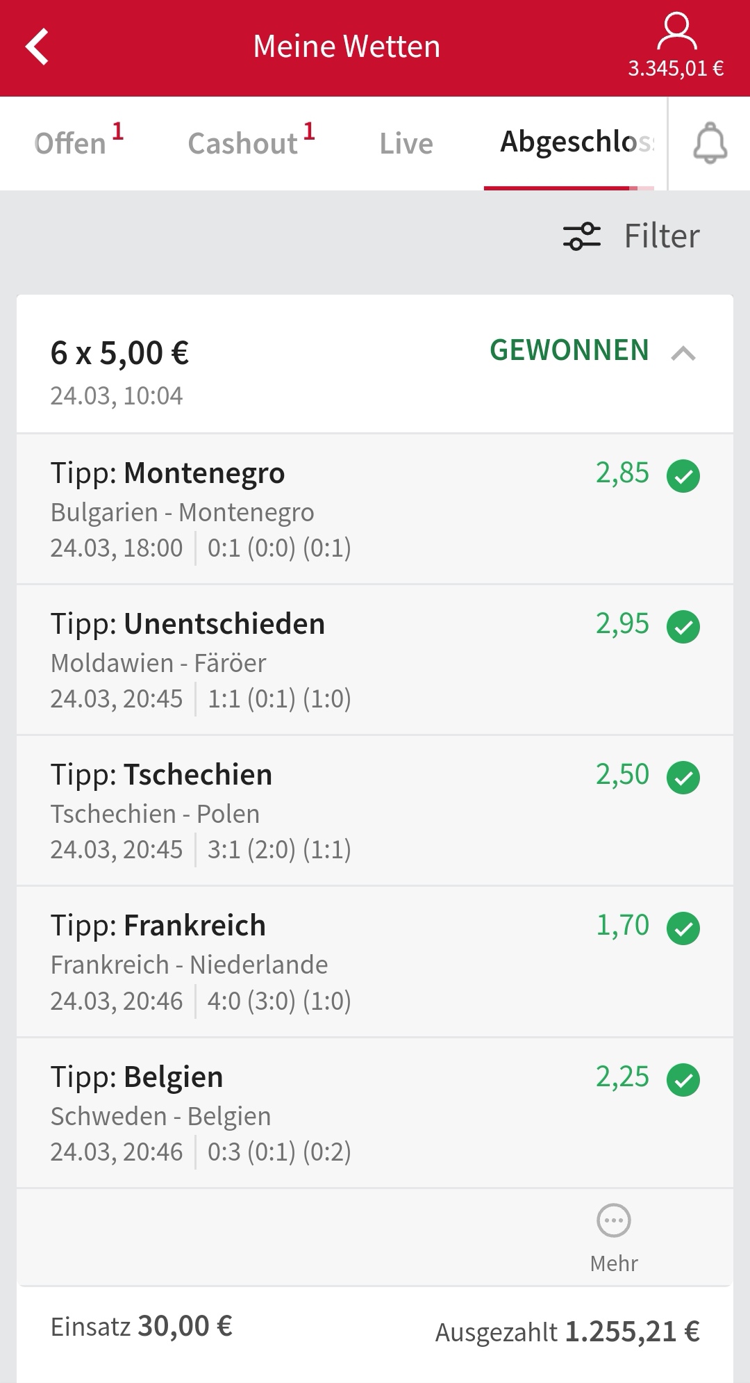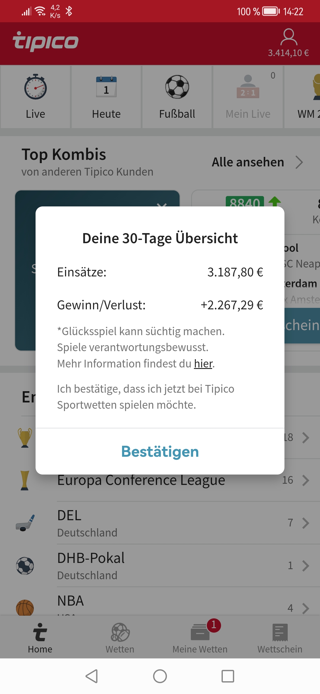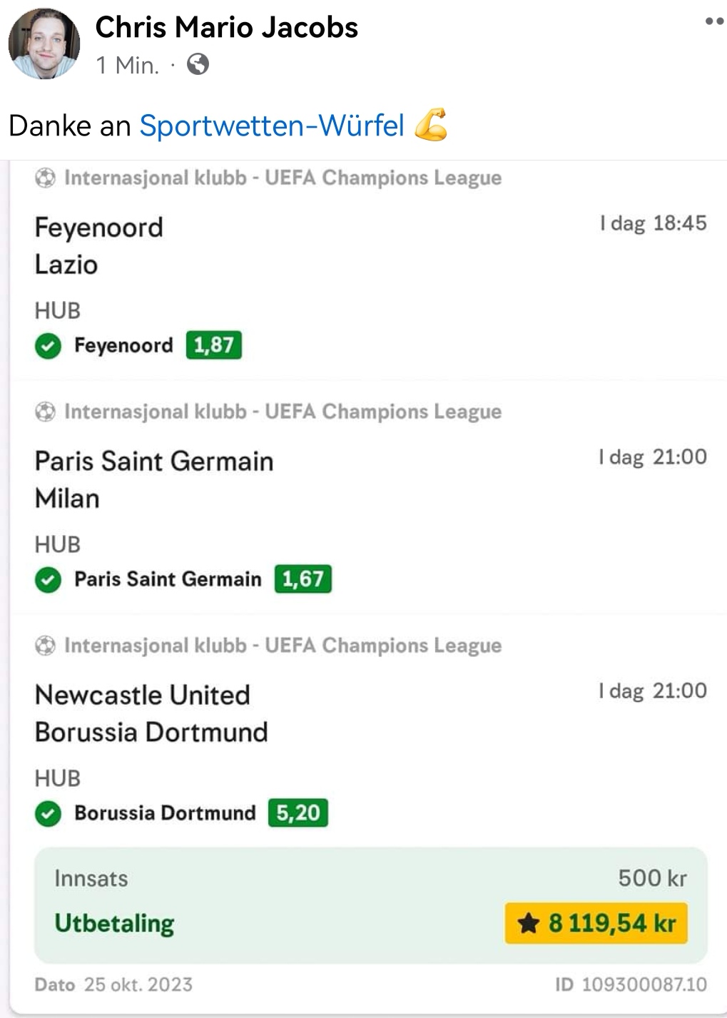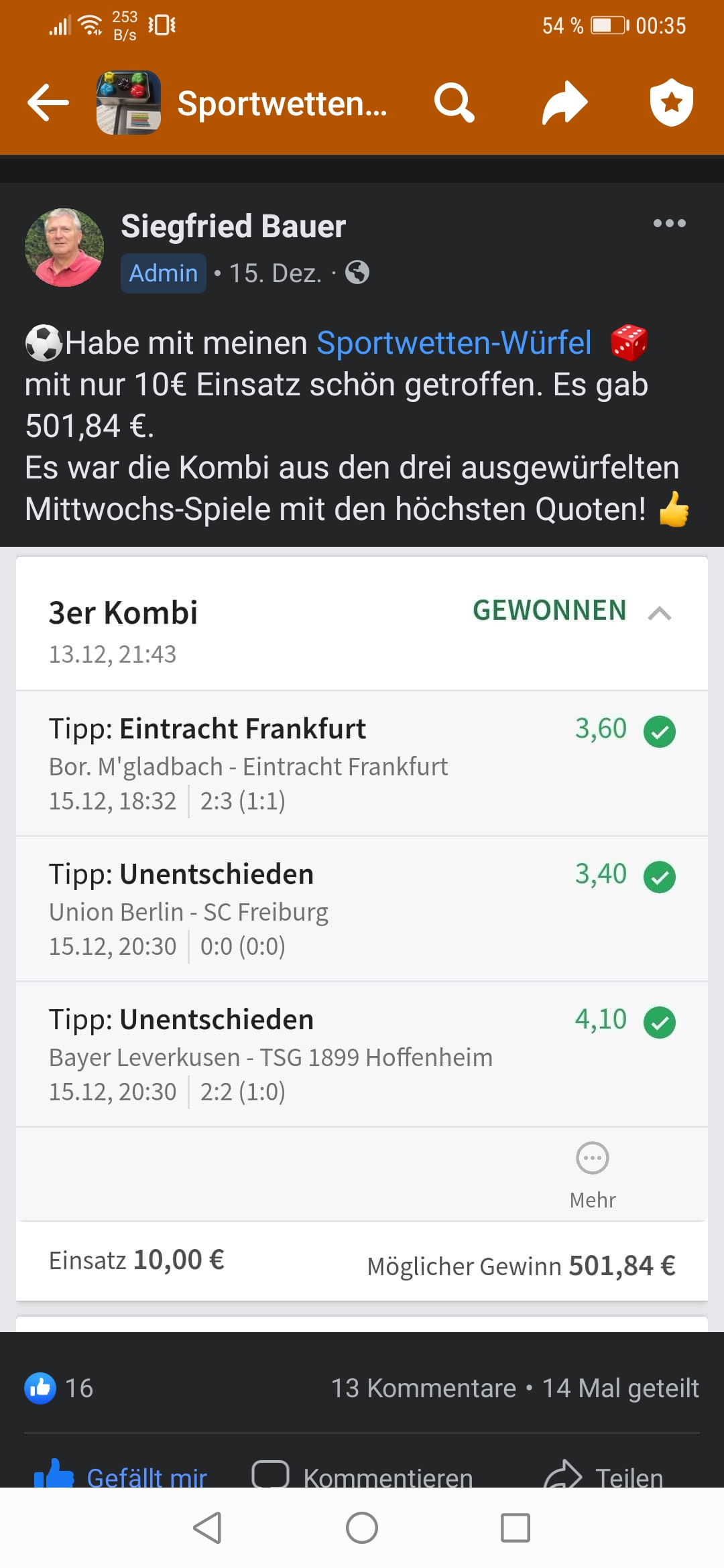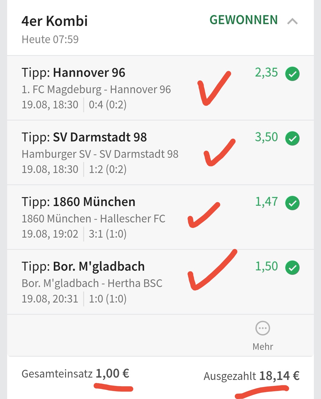 • Du findest hier viele Erfolge des mathematischen Sportwetten Würfel Sets. Sie können nämlich deine Chancen erhöhen und dich langfristig in den grünen Bereich bringen (wie bei mir).