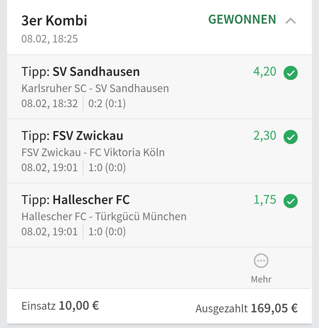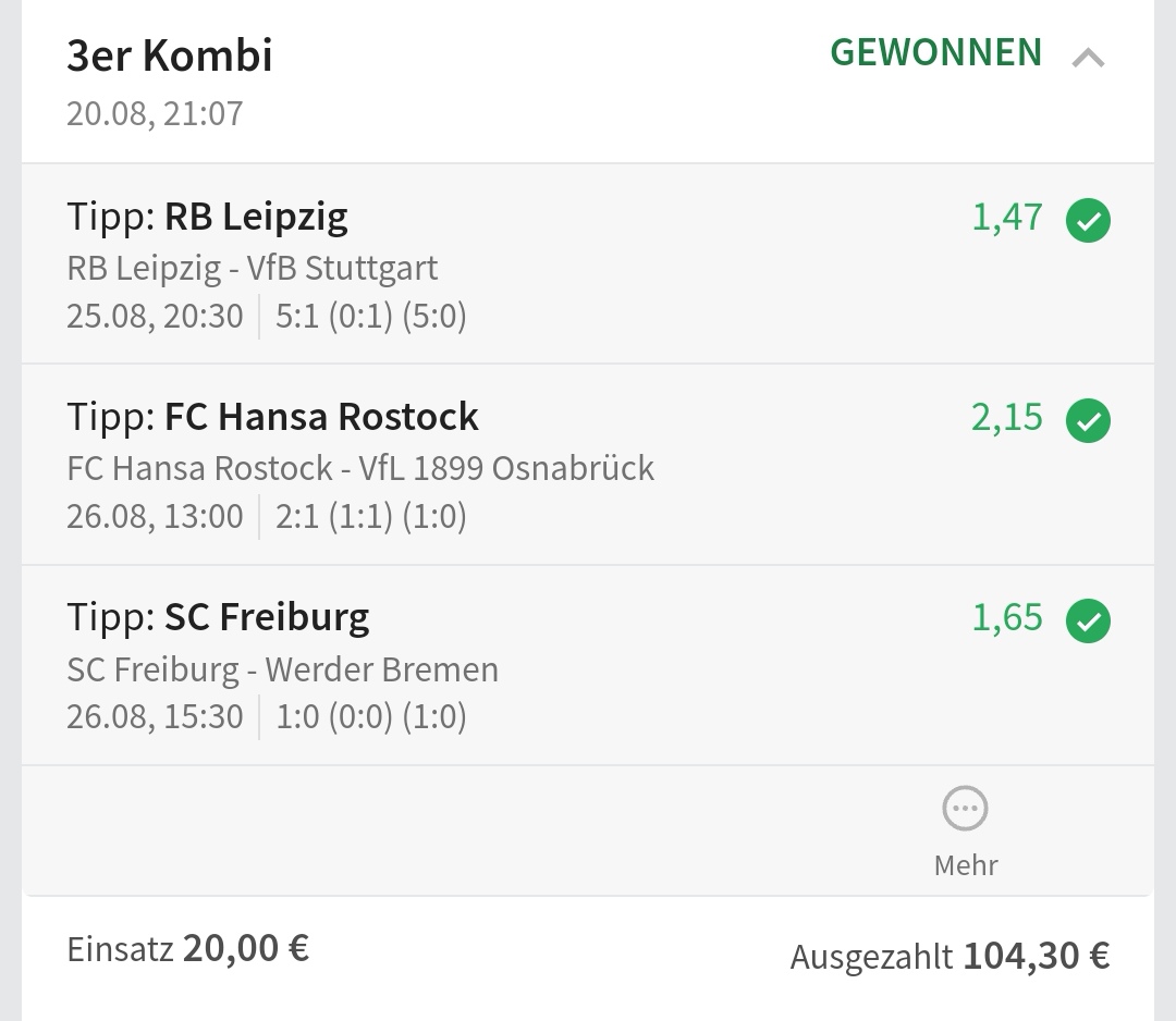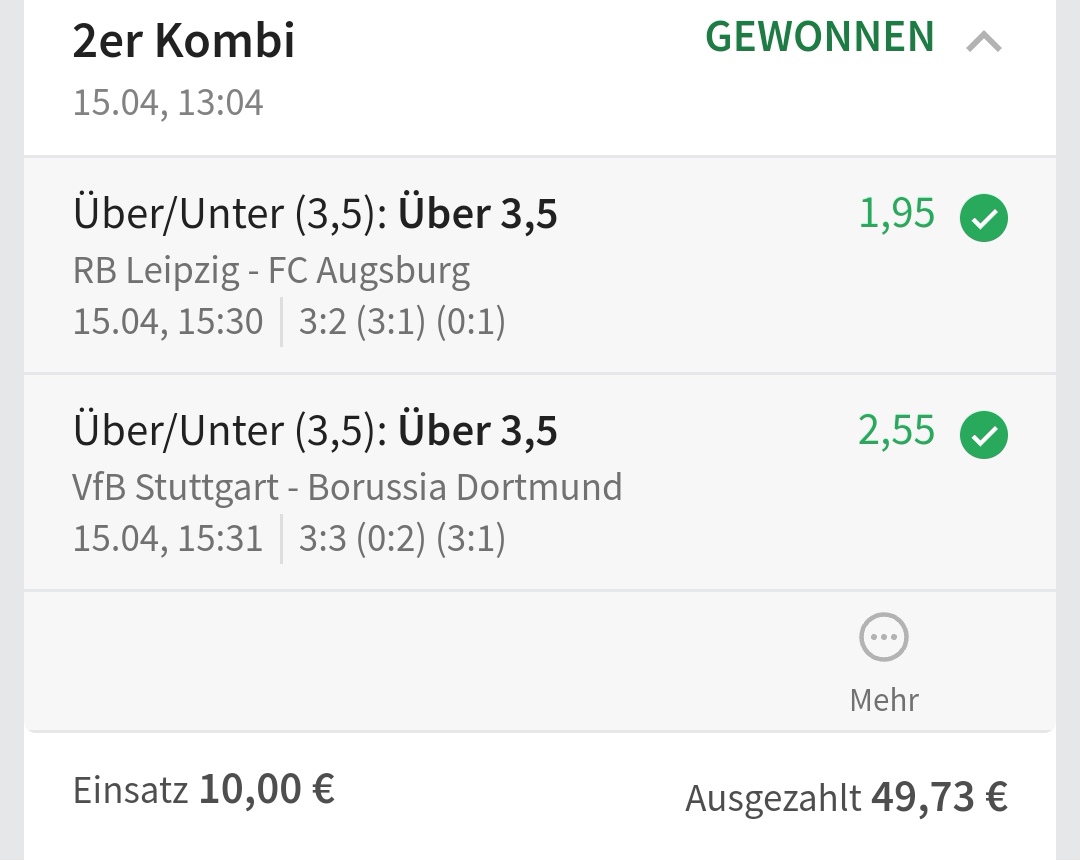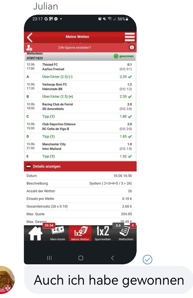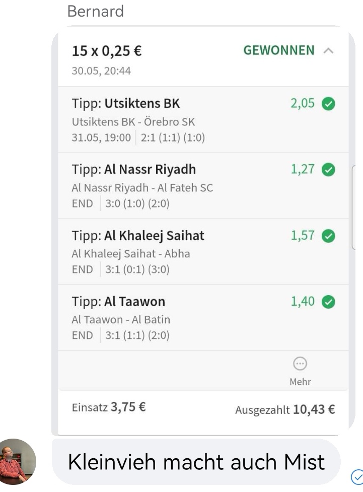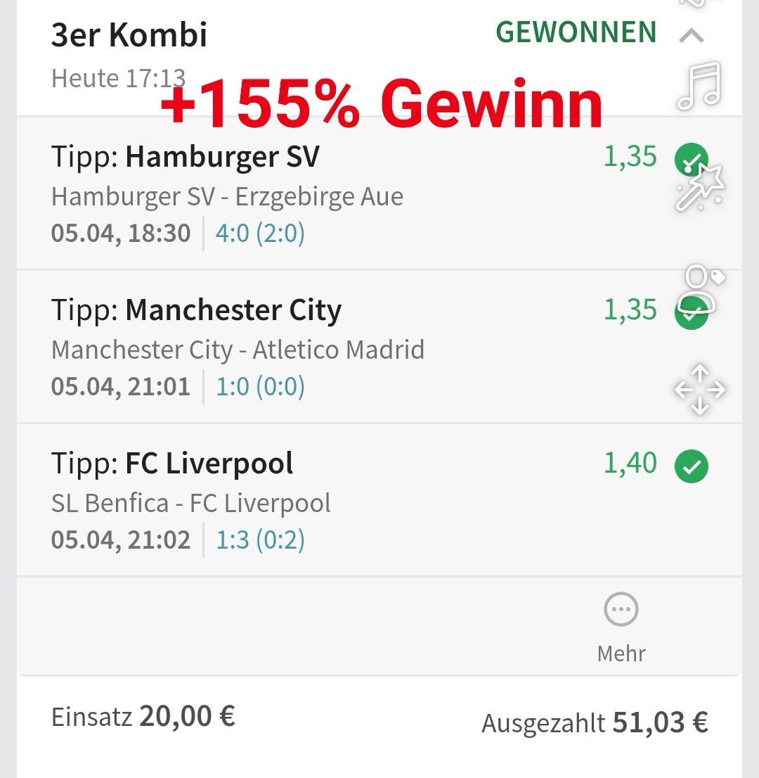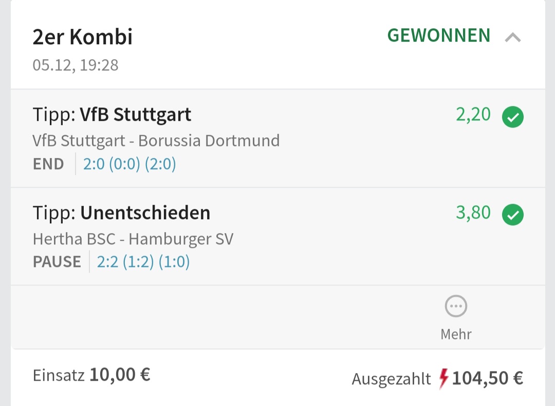 • Ab 2024 habe ich aus Zeitgründen das Einstellen von weiteren Bildern eingestellt. Die Erfolgserwartungen haben sich bestätigt und damit die Logik der mathematischen Sportwetten Würfel.