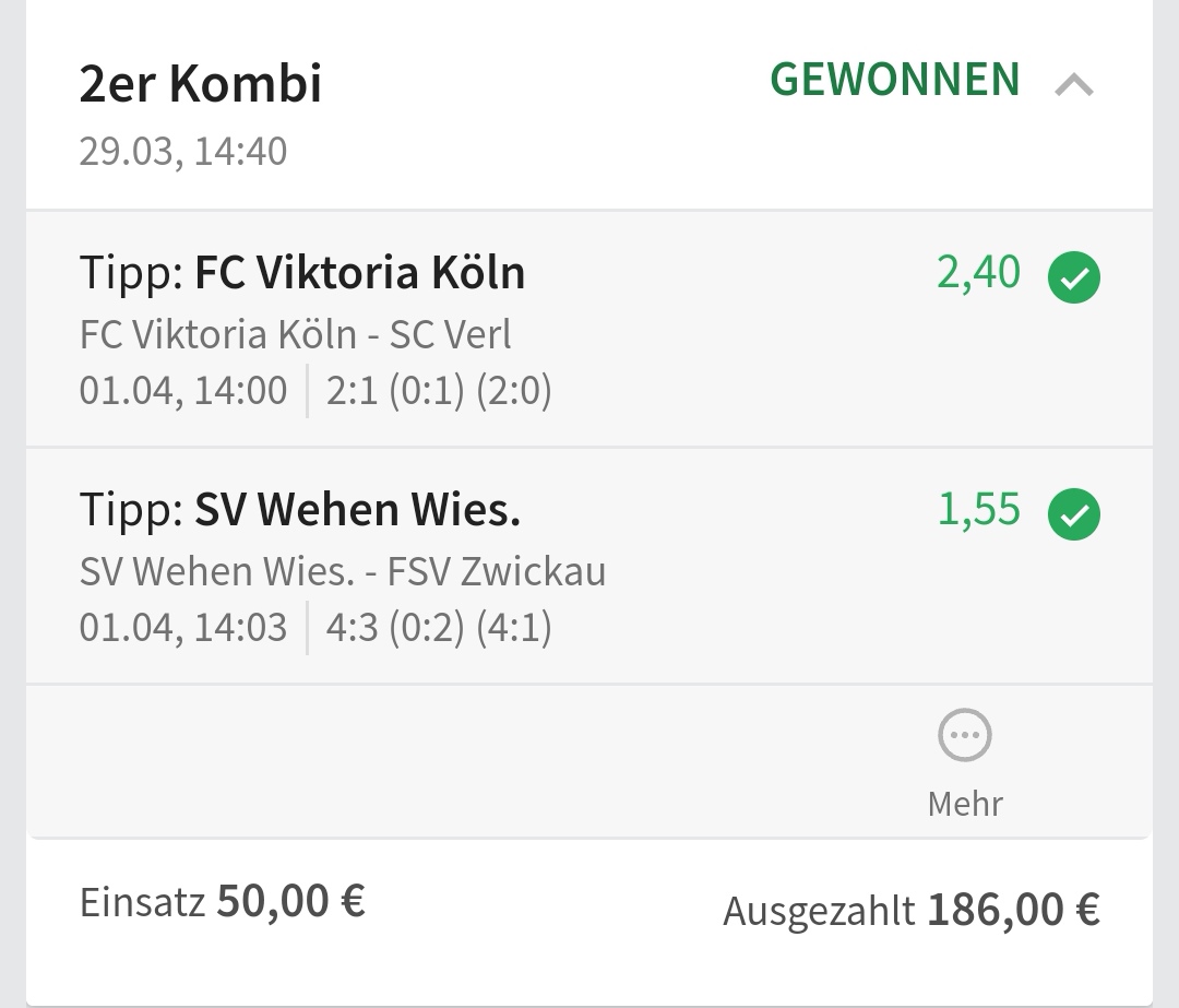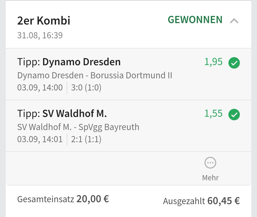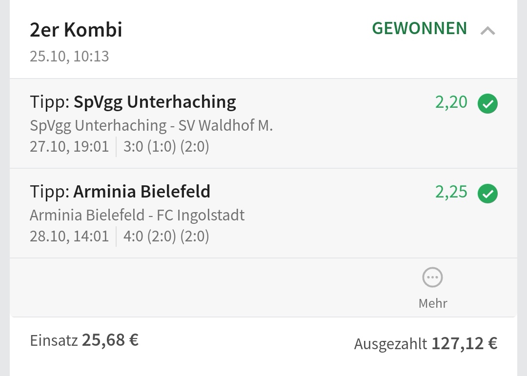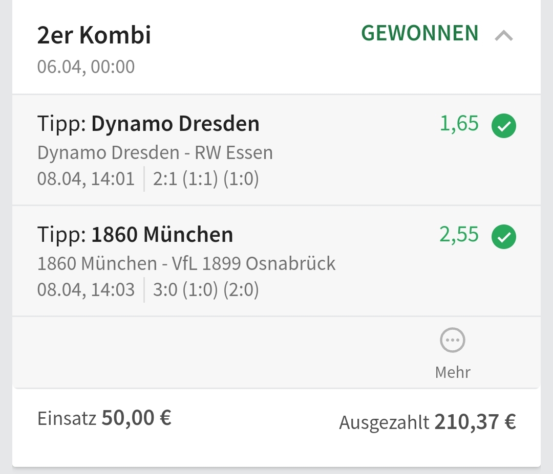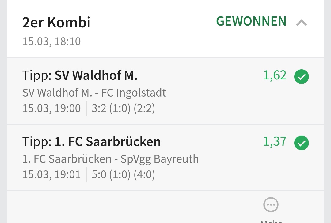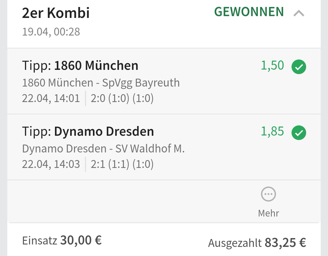 • Ab 2024 habe ich aus Zeitgründen das Einstellen von weiteren Bildern eingestellt. Die Erfolgserwartungen haben sich bestätigt und damit die Logik der mathematischen Sportwetten Würfel.