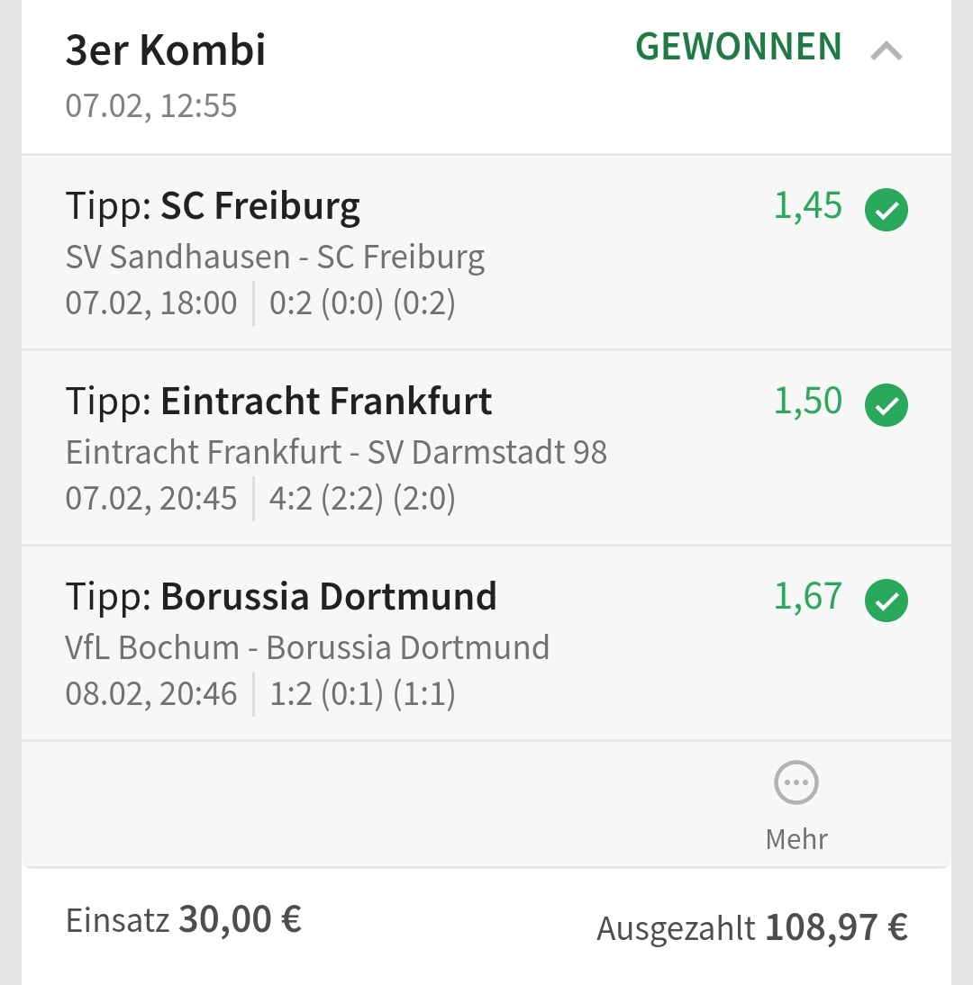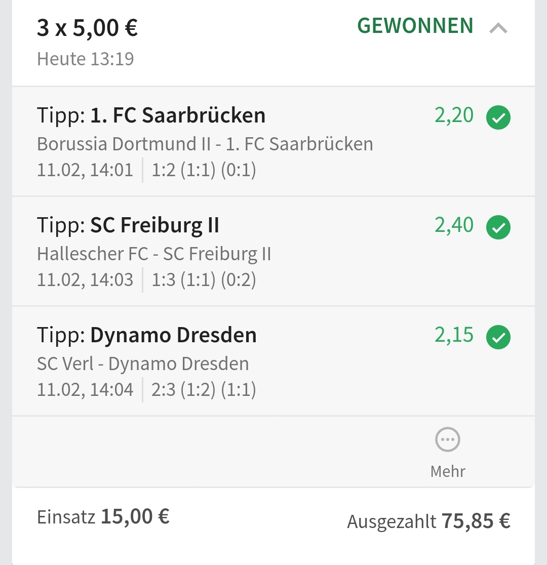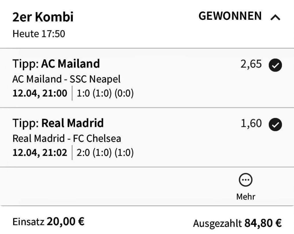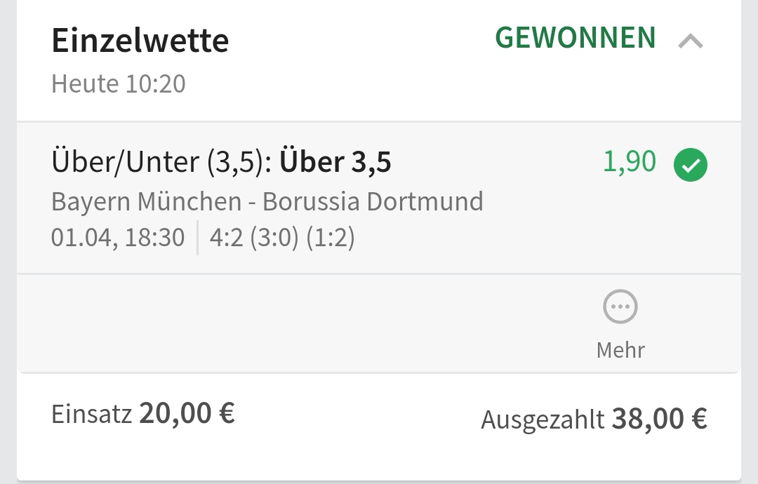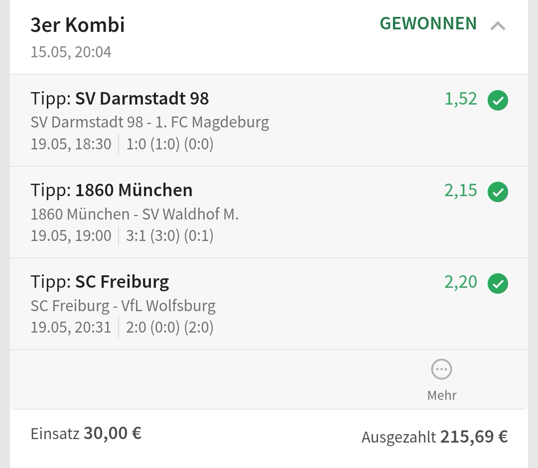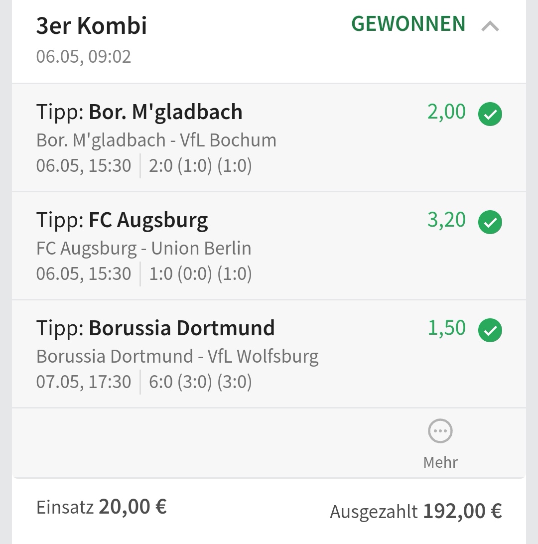 • Ab 2024 habe ich aus Zeitgründen das Einstellen von weiteren Bildern eingestellt. Die Erfolgserwartungen haben sich bestätigt und damit die Logik der mathematischen Sportwetten Würfel.