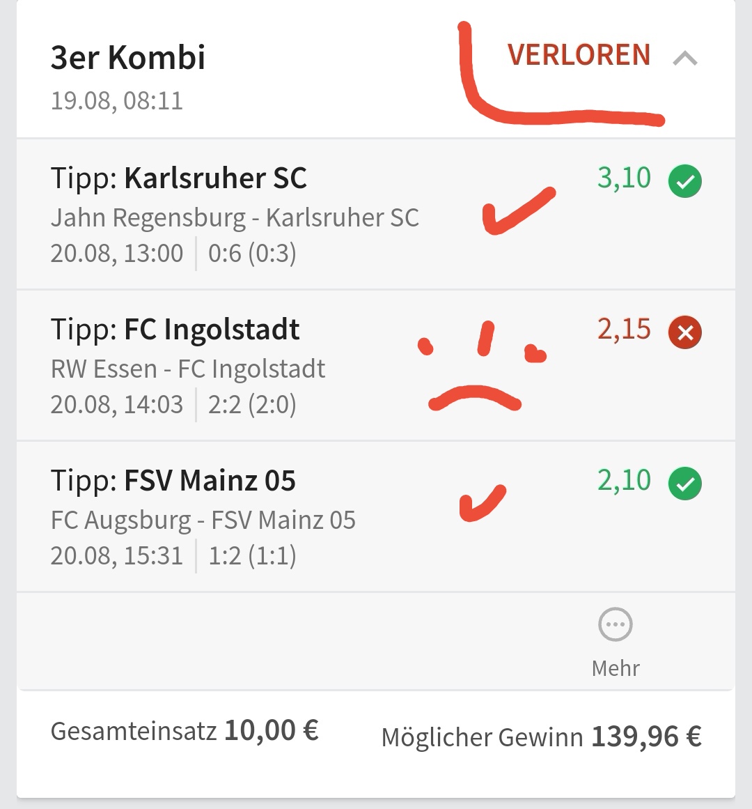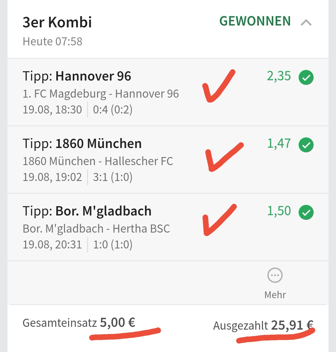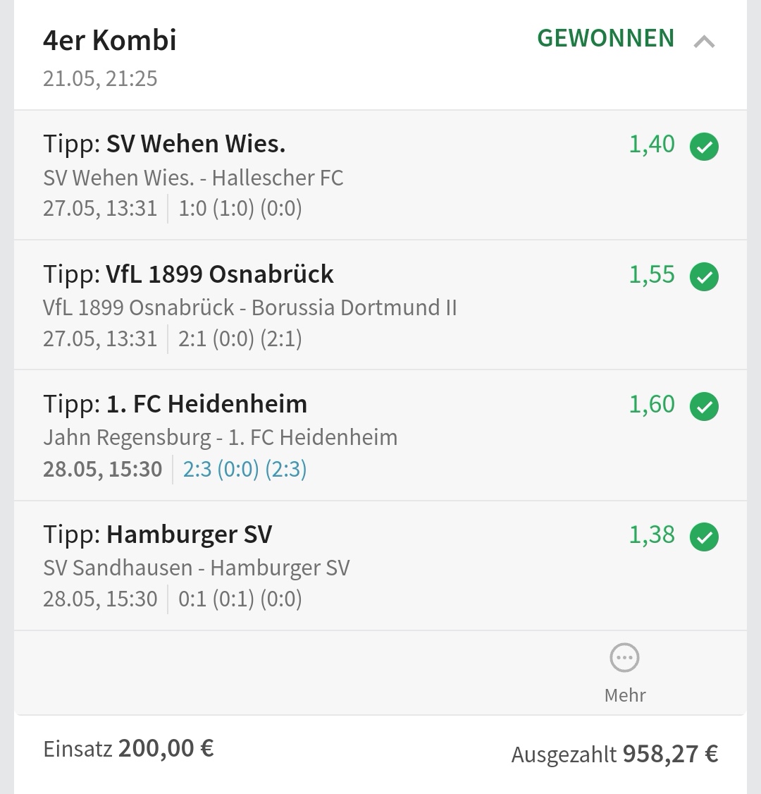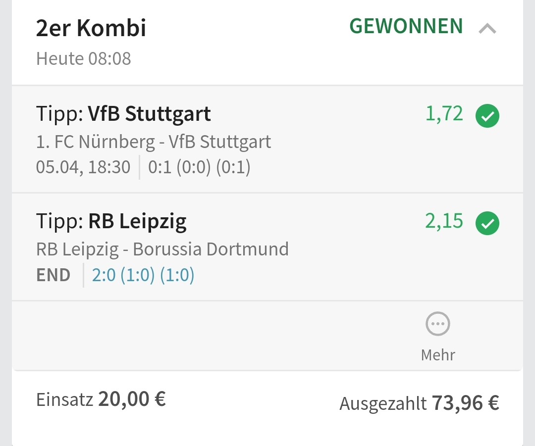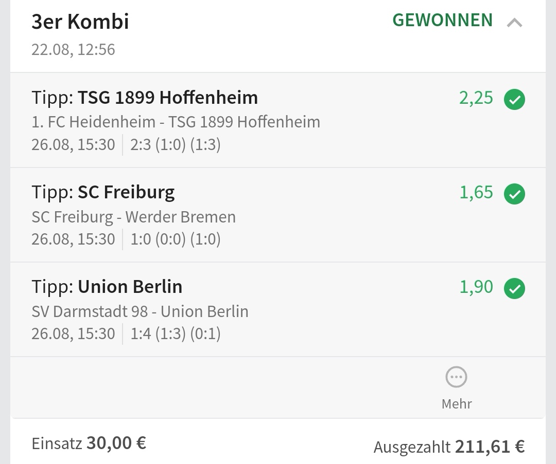• Ab 2024 habe ich aus Zeitgründen das Einstellen von weiteren Bildern eingestellt. Die Erfolgserwartungen haben sich bestätigt und damit die Logik der mathematischen Sportwetten Würfel.