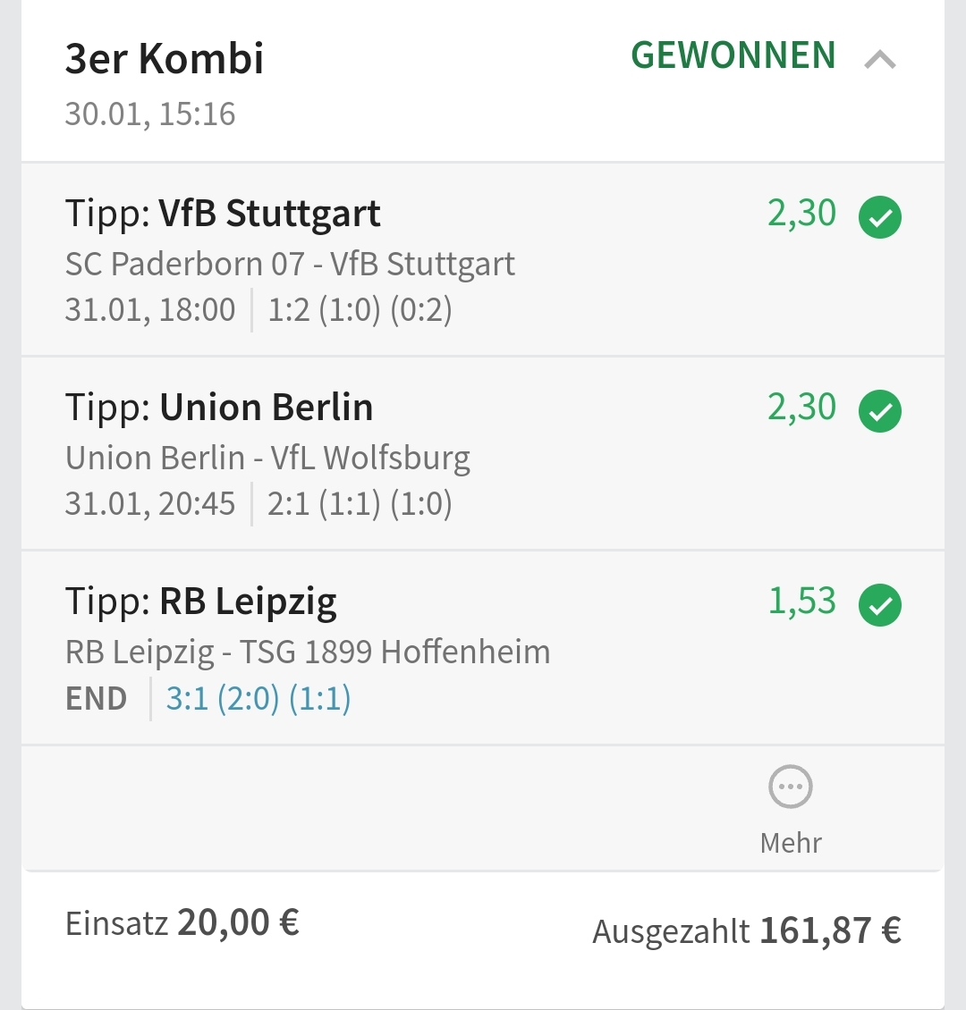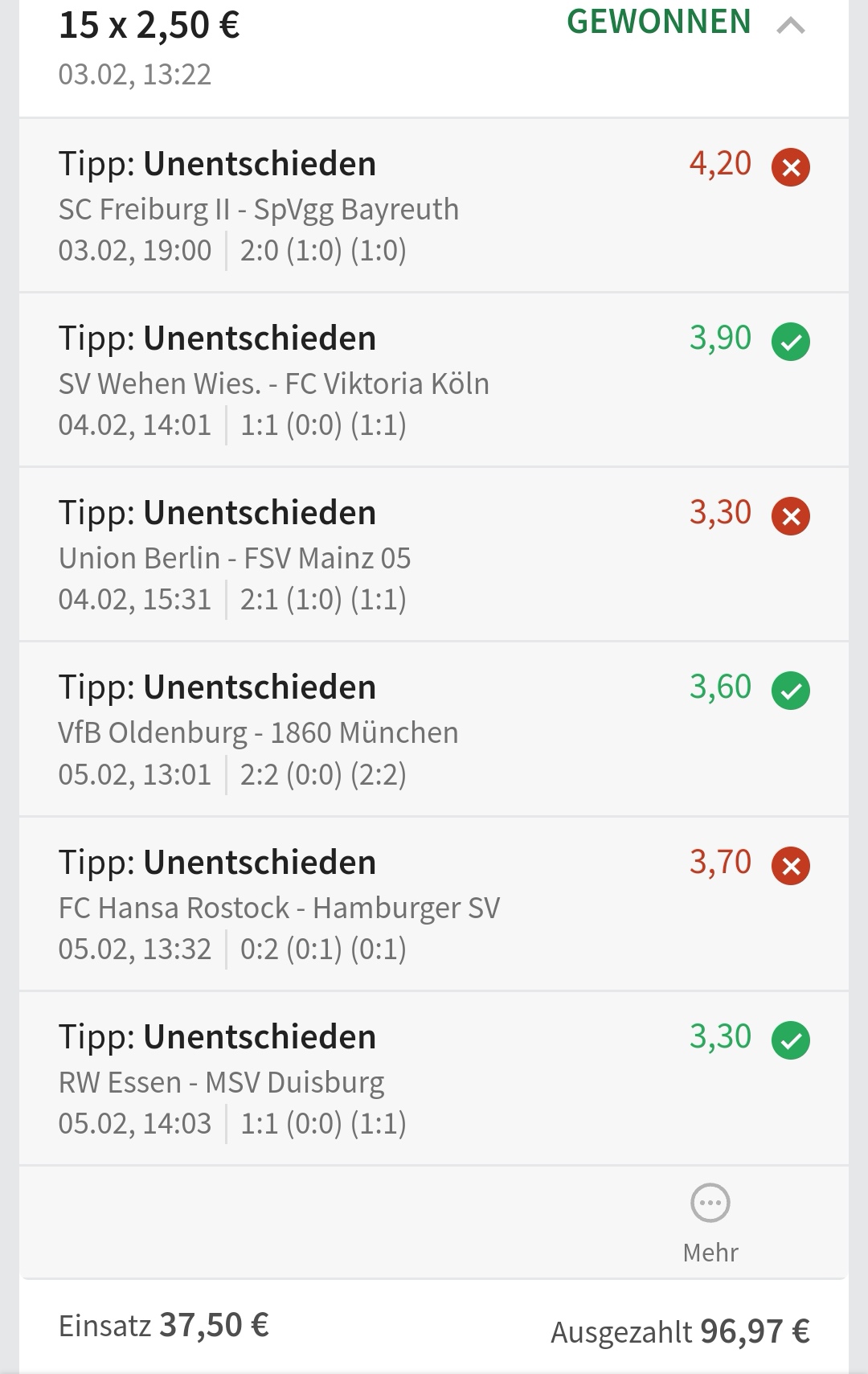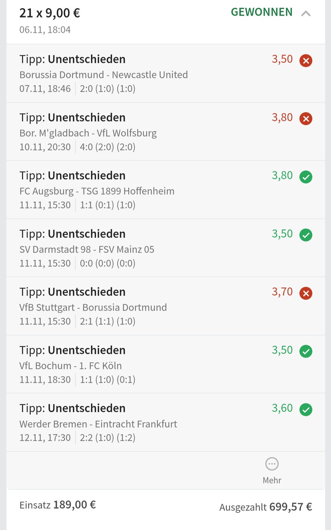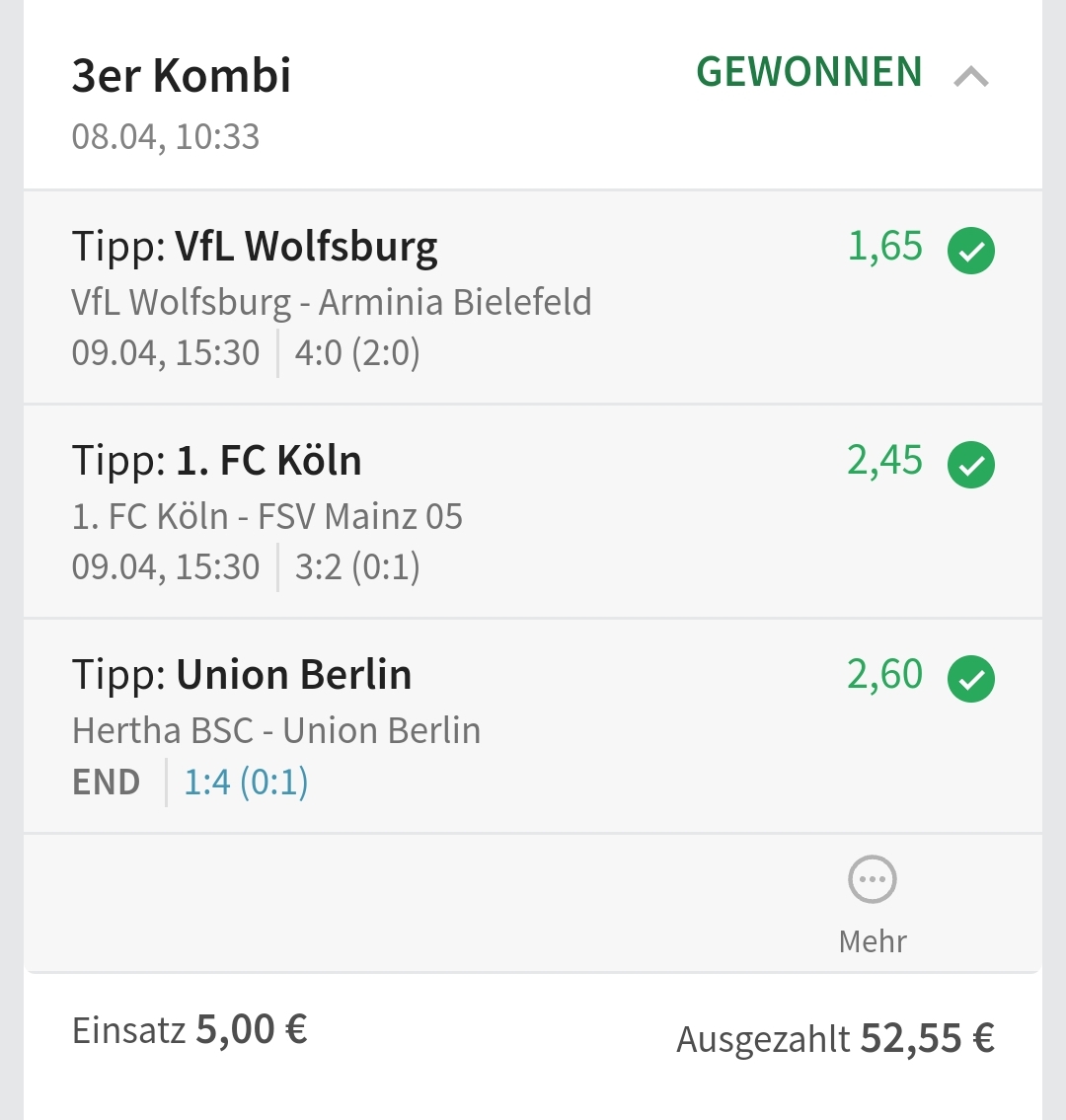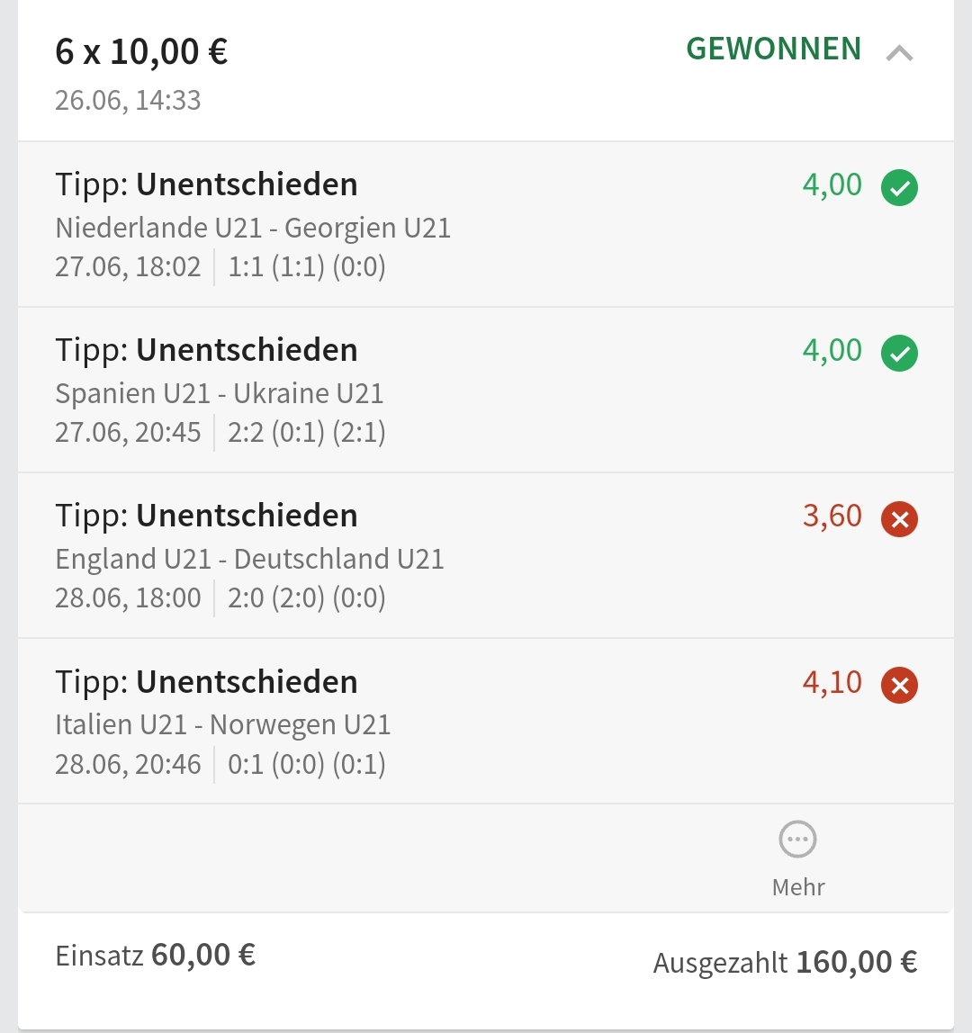 • Ab 2024 habe ich aus Zeitgründen das Einstellen von weiteren Bildern eingestellt. Die Erfolgserwartungen haben sich bestätigt und damit die Logik der mathematischen Sportwetten Würfel.