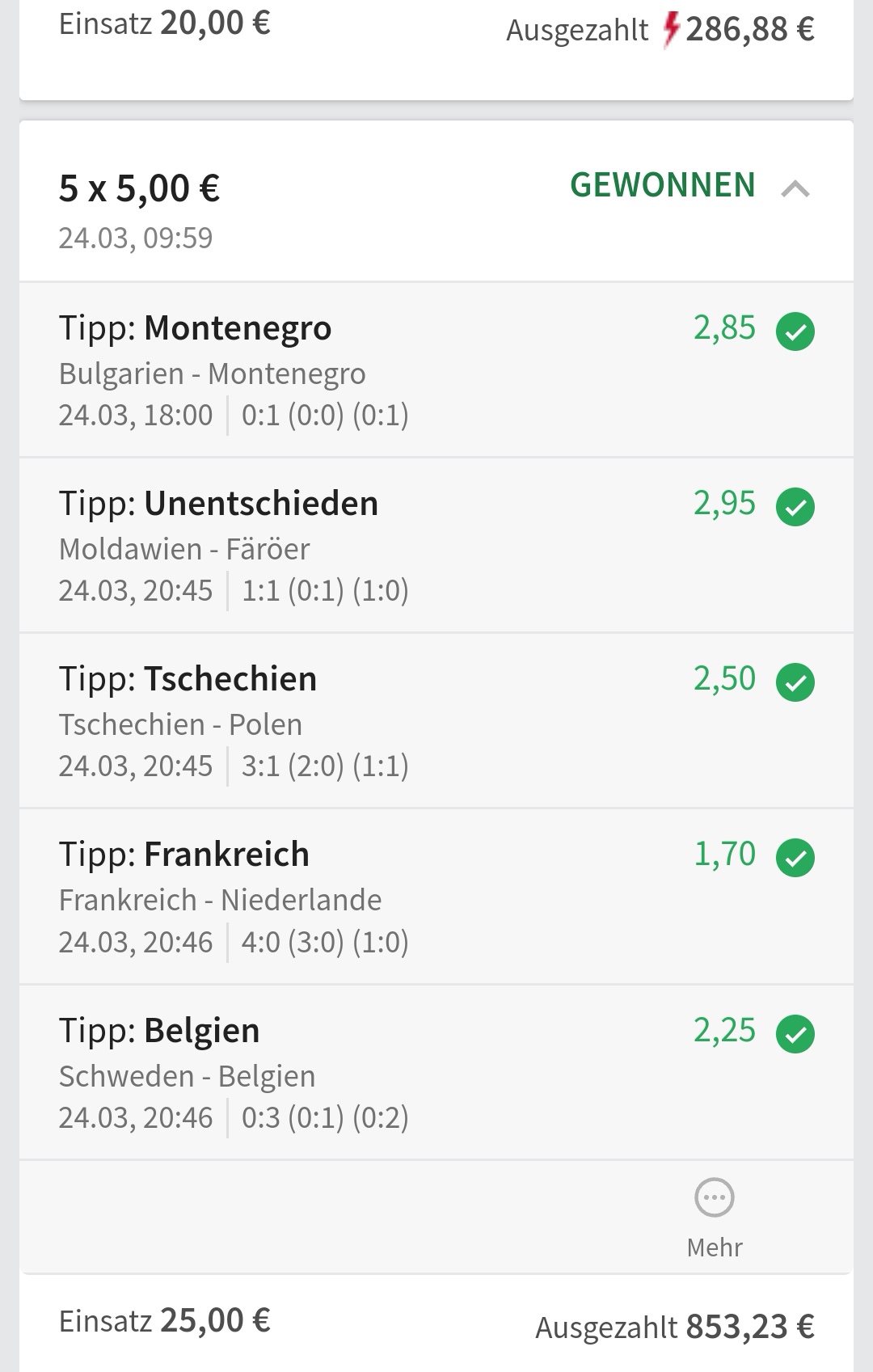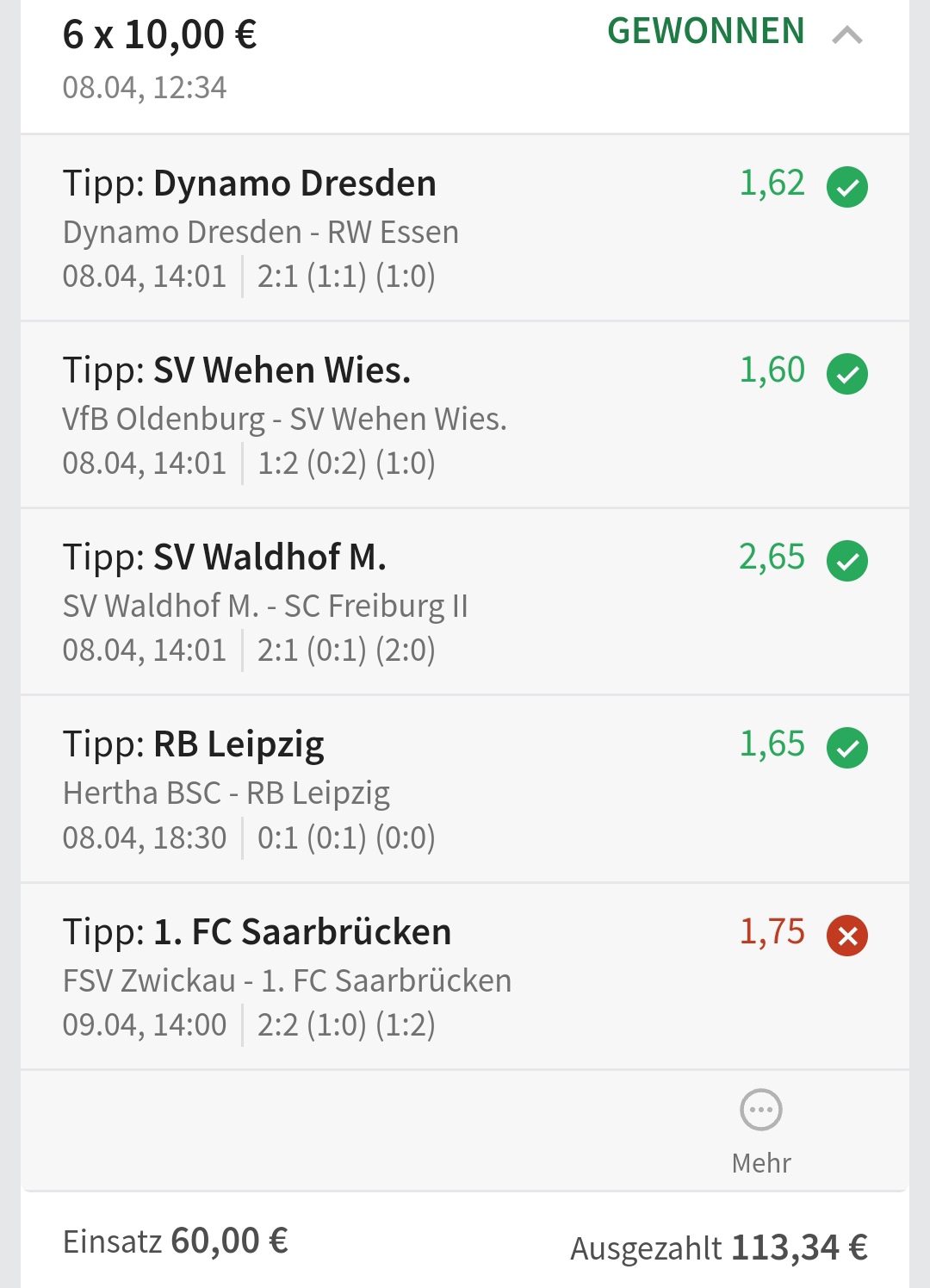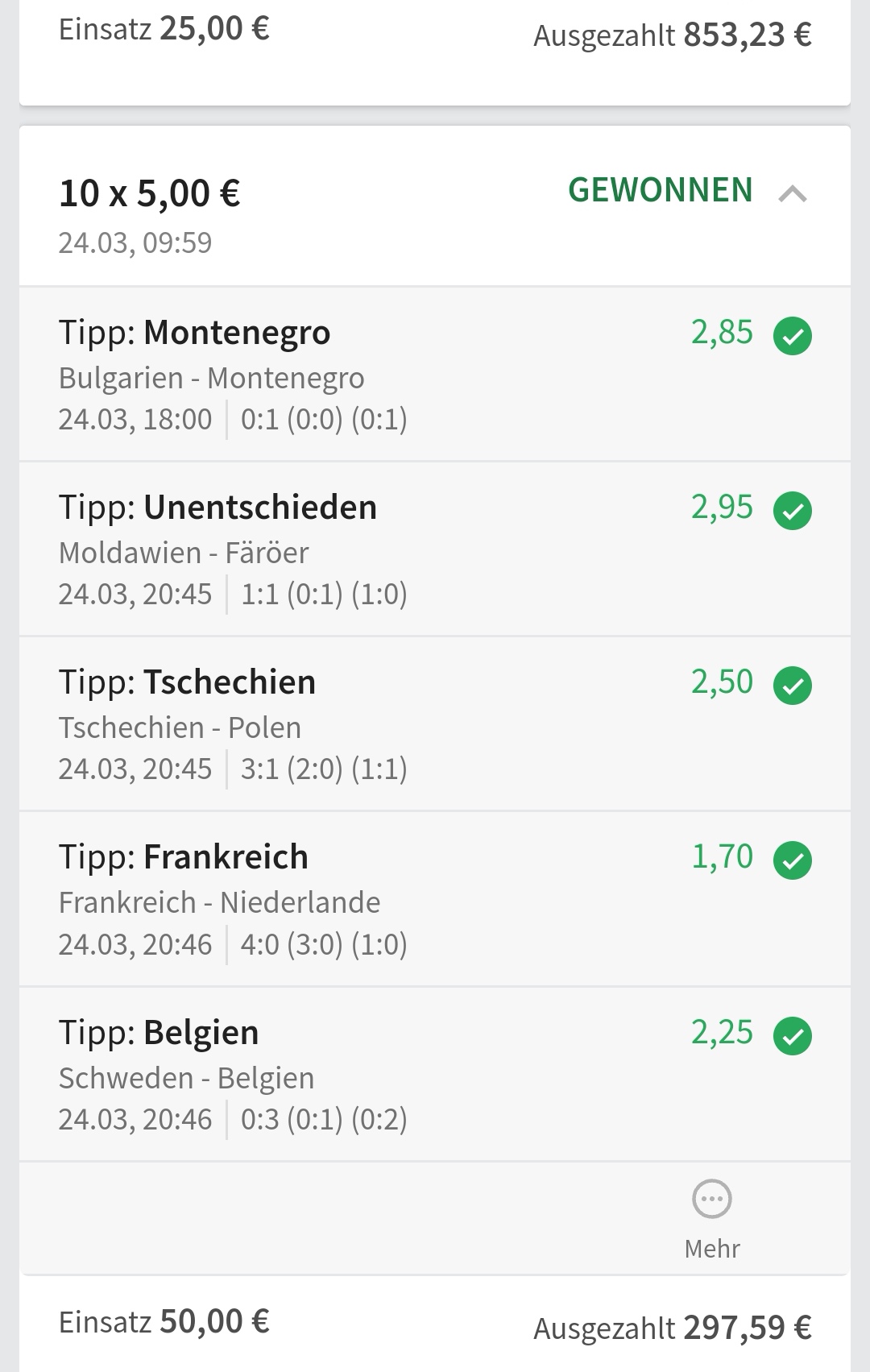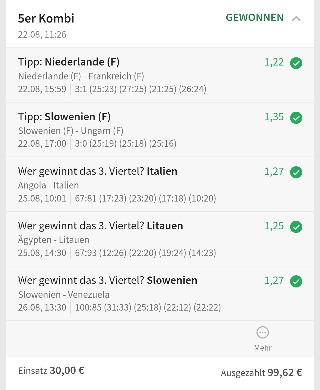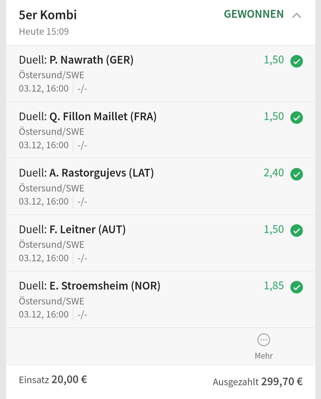 • Ab 2024 habe ich aus Zeitgründen das Einstellen von weiteren Bildern eingestellt. Die Erfolgserwartungen haben sich bestätigt und damit die Logik der mathematischen Sportwetten Würfel.