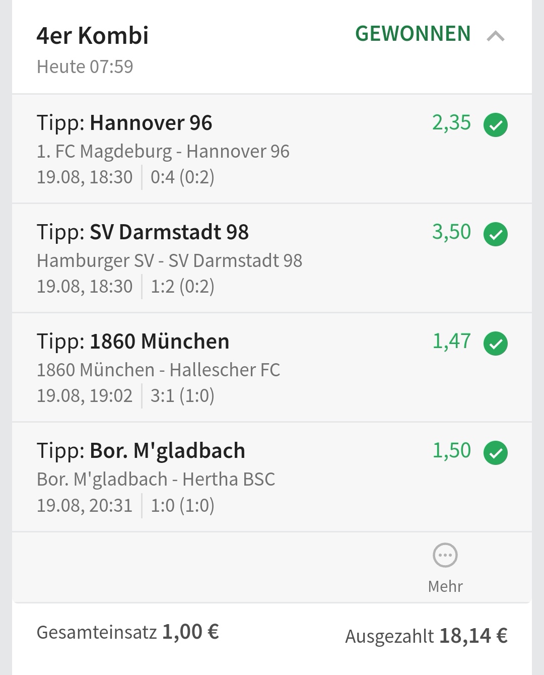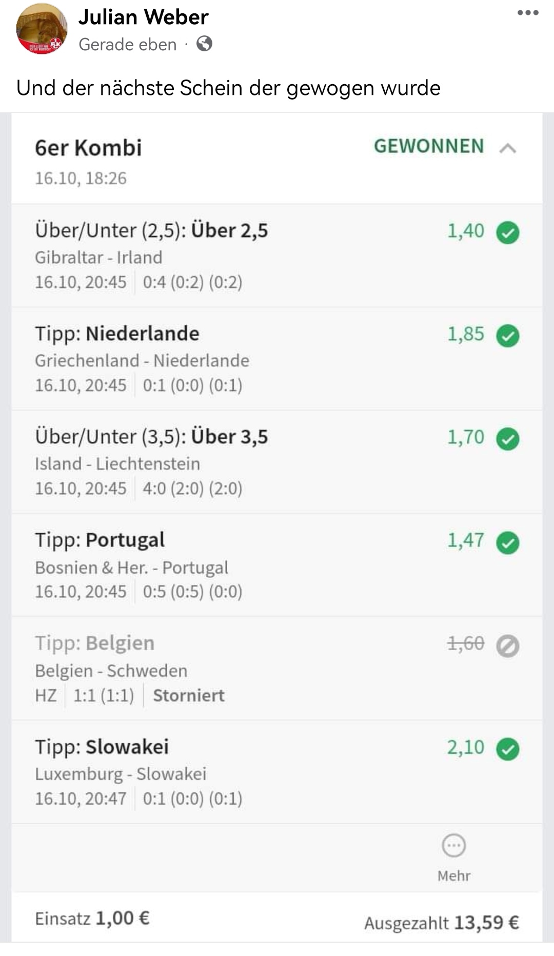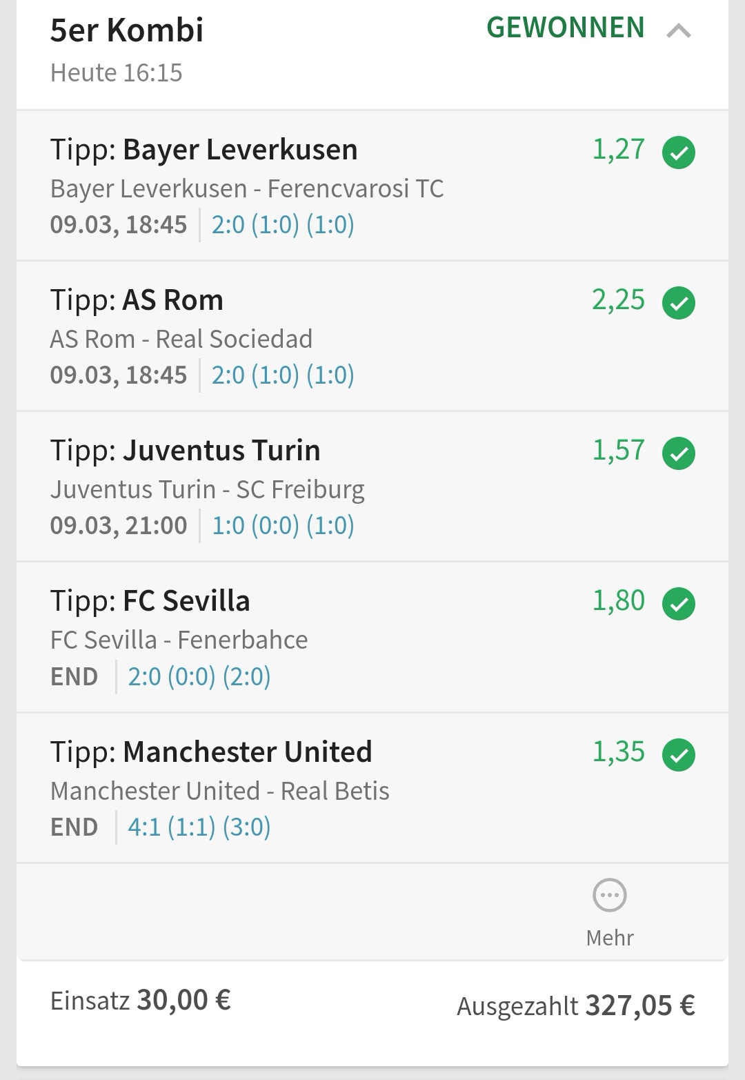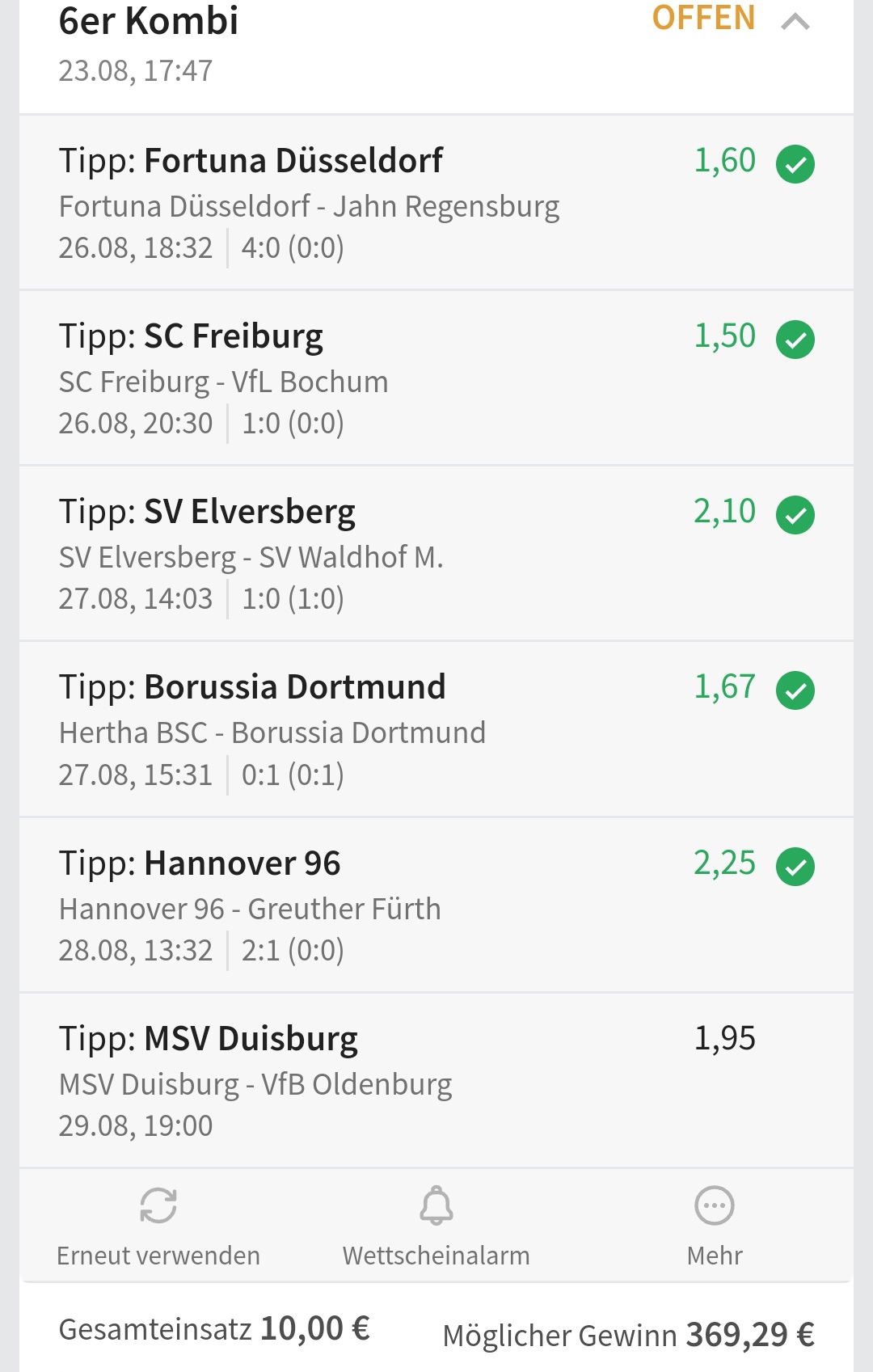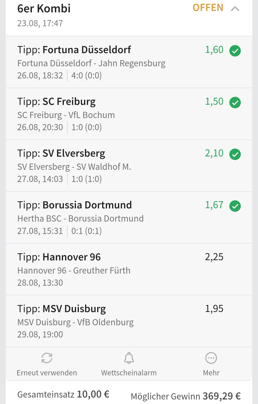 • Ab 2024 habe ich aus Zeitgründen das Einstellen von weiteren Bildern eingestellt. Die Erfolgserwartungen haben sich bestätigt und damit die Logik der mathematischen Sportwetten Würfel.