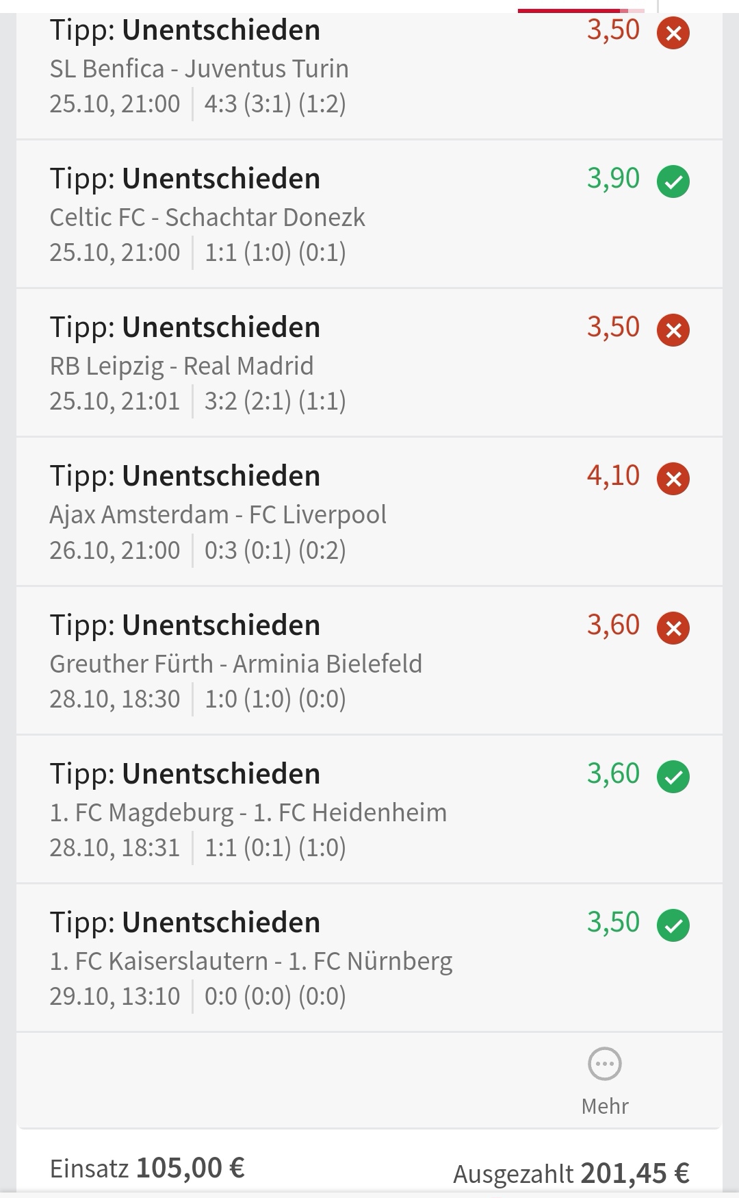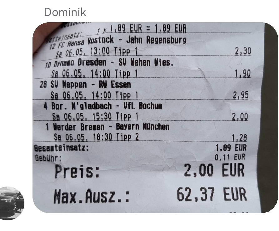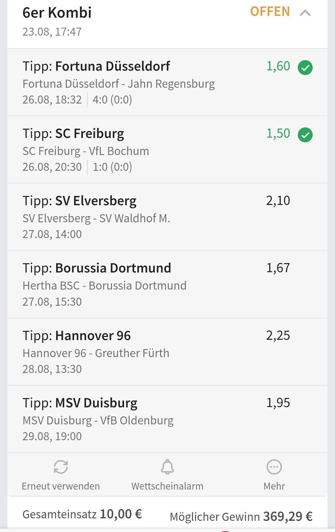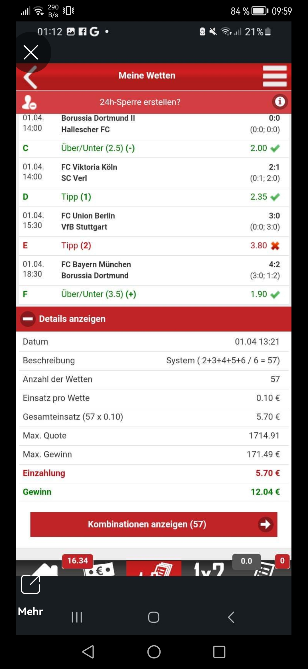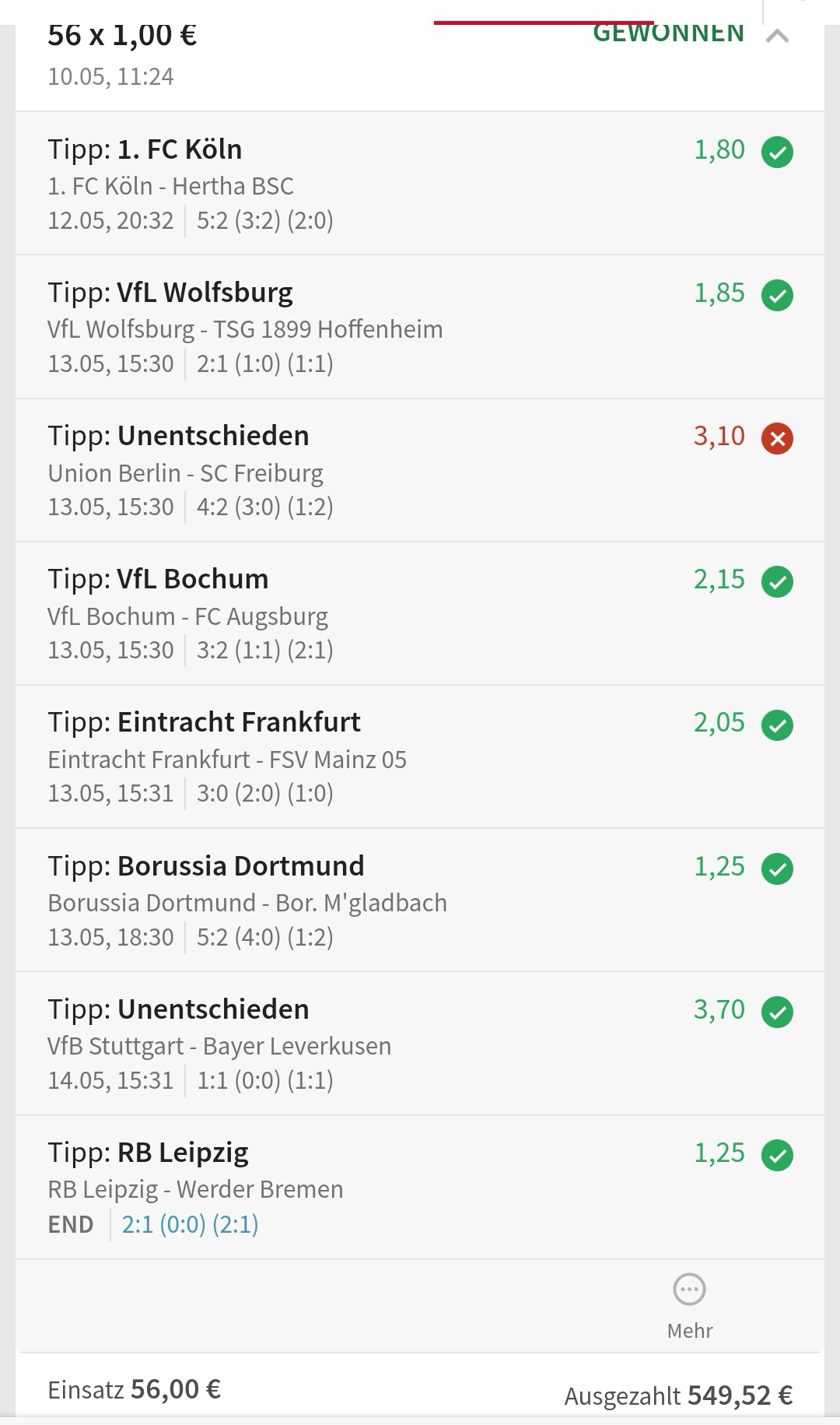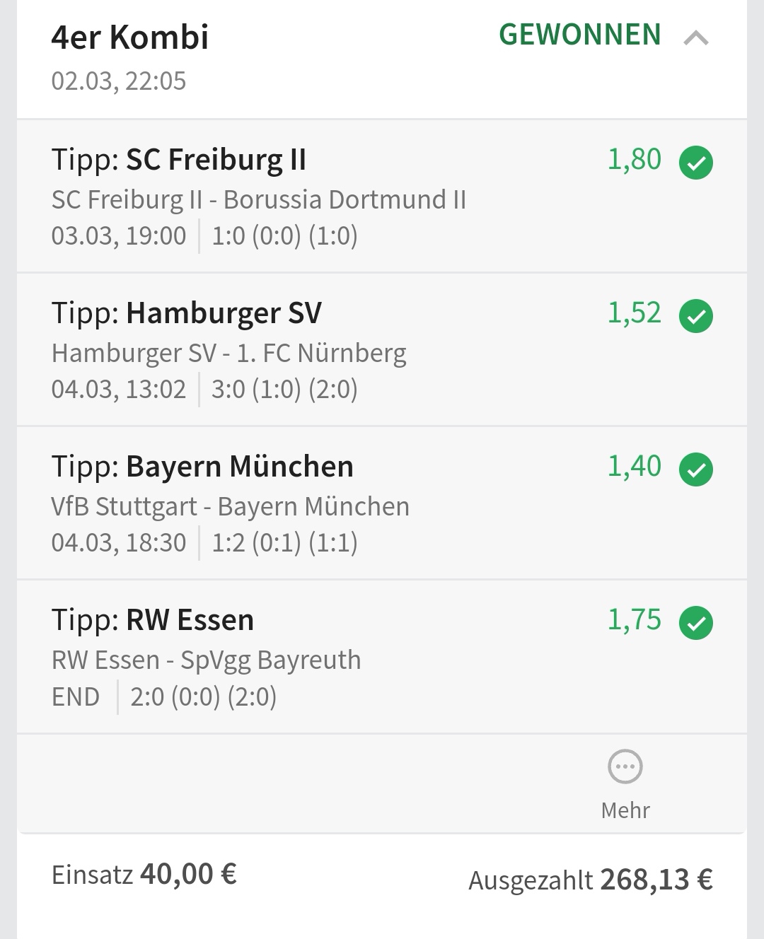 • Ab 2024 habe ich aus Zeitgründen das Einstellen von weiteren Bildern eingestellt. Die Erfolgserwartungen haben sich bestätigt und damit die Logik der mathematischen Sportwetten Würfel.