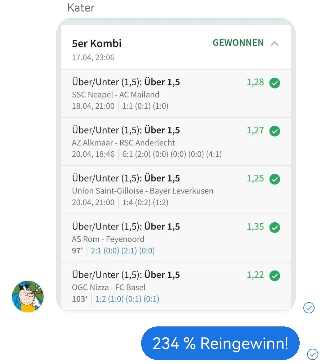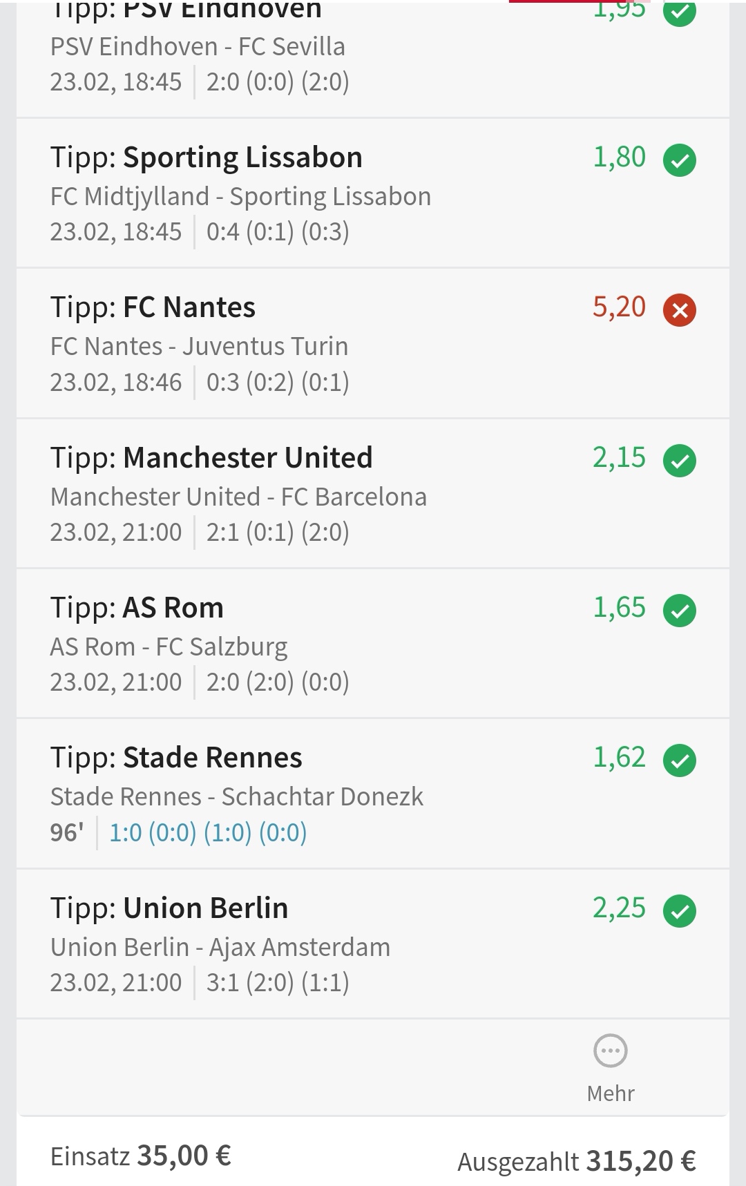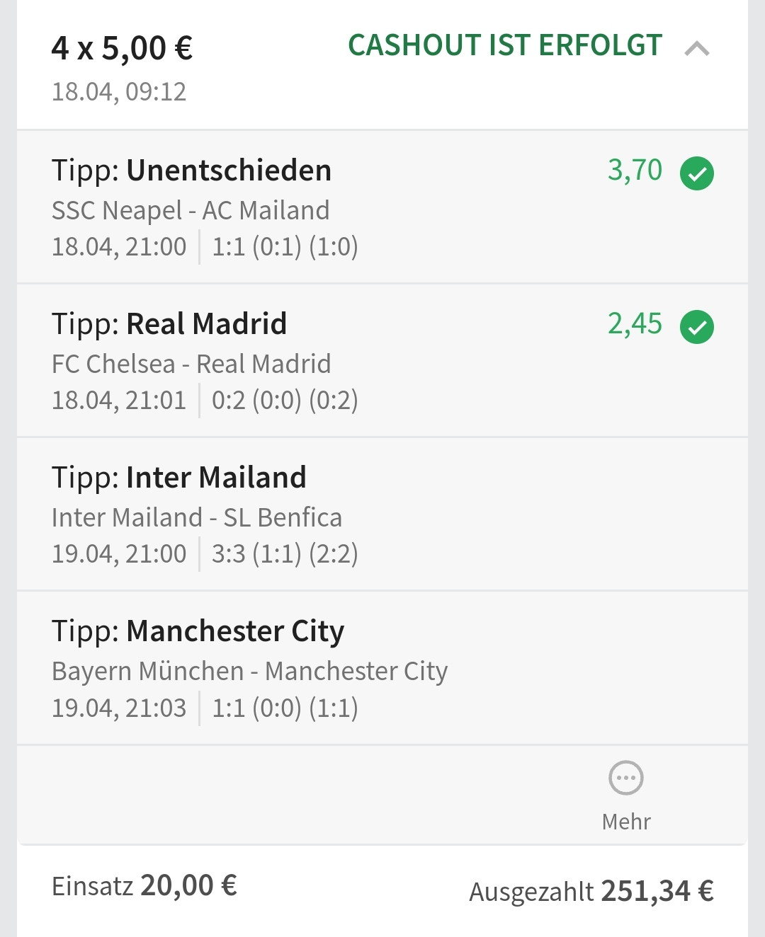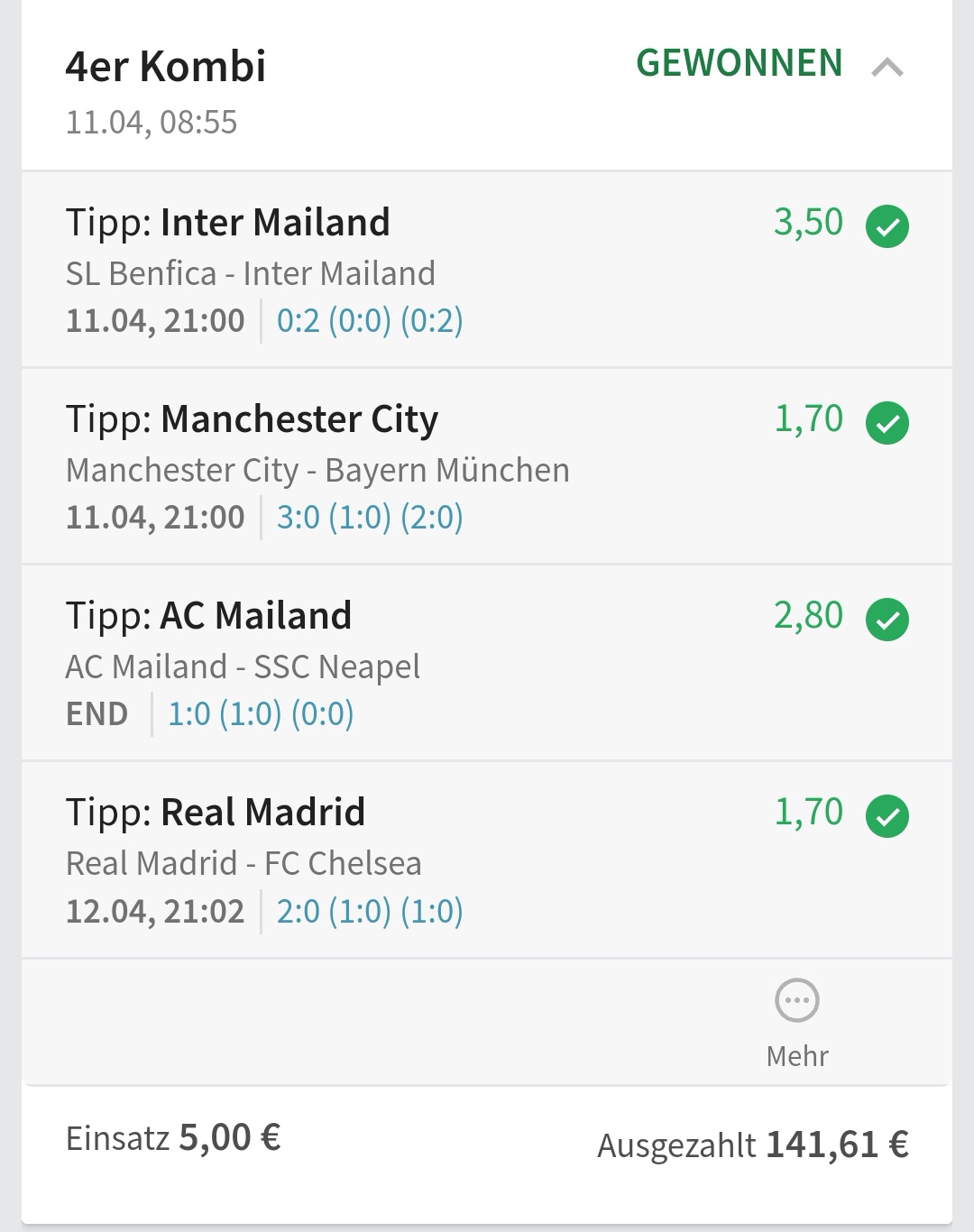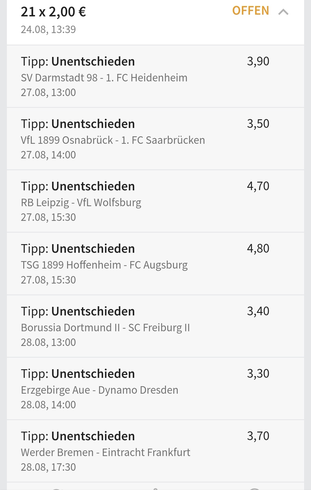 • Ab 2024 habe ich aus Zeitgründen das Einstellen von weiteren Bildern eingestellt. Die Erfolgserwartungen haben sich bestätigt und damit die Logik der mathematischen Sportwetten Würfel.