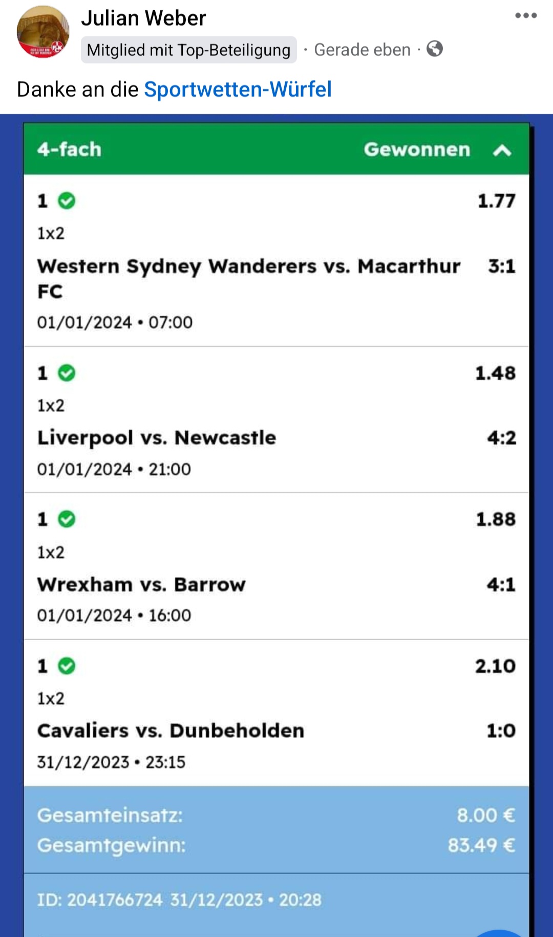 • Aktuelle Erfolge der Auswürflungen findest du in der öffentlichen Facebook-Gruppe „Prognose Labor: Fußball & Sport„. Du kannst gerne der Gruppe beitreten.