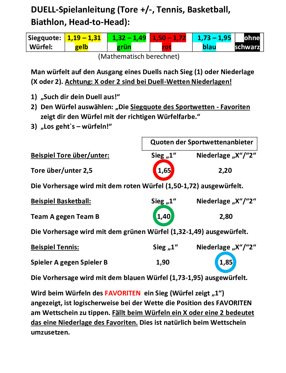 Info: Die Würfel-Quoten bei der Duell-Spielanleitung sind natürlich anders kalkuliert.